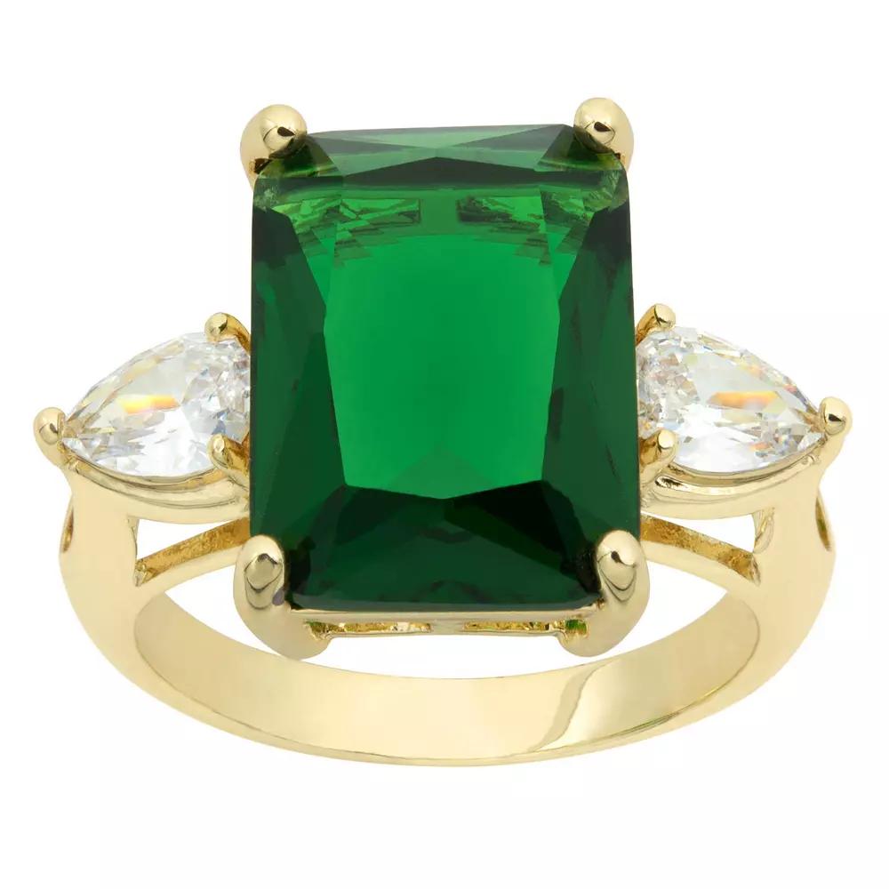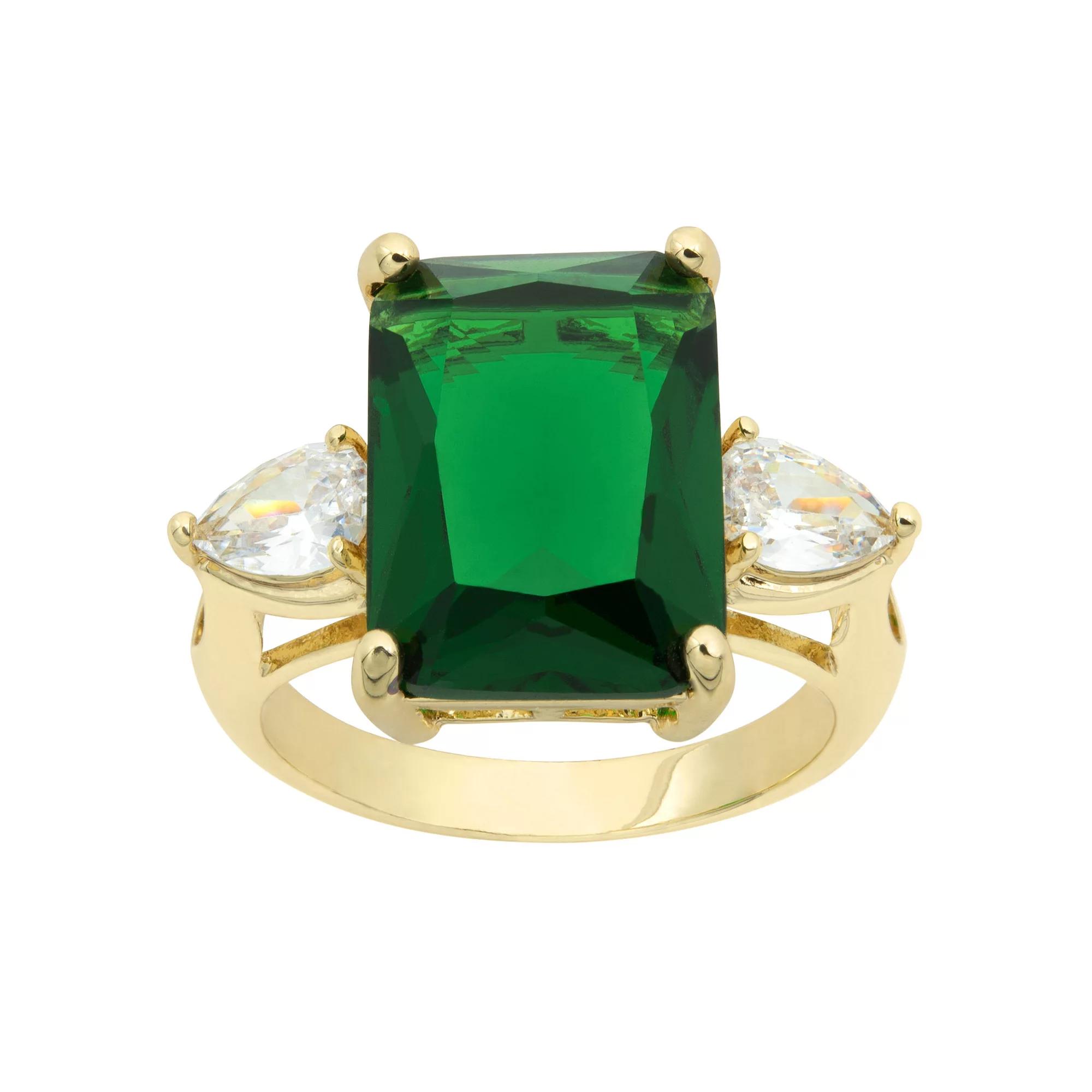 Complement your ensemble with this enchanting emerald cut green crystal and clear cubic zirconia City Luxe ring. Click on this JEWELRY & WATCHES GUIDE to learn about fit, styles, materials and more! Complement your ensemble with this enchanting emerald cut green crystal and clear cubic zirconia City Luxe ring. Click on this JEWELRY & WATCHES GUIDE to learn about fit, styles, materials and more! FEATURES Width: 15 mm Shank style: straight Band fit: flat Metal: brass Plating: gold tone Finish: polished Packaging: boxed Crystal accents Nickel freeSTONE DETAILS Stone type: cubic zirconia Total weight: 3/2 ct. Center stone size: 4 mm x 6 mm Shape: pear Setting: prong Gemstones may have been treated to enhance their appearance. Special care may be required. Please visit our Gemstone Treatment & Special Care Guide for more information. Size: 9. Gender: female. Age Group: adult.