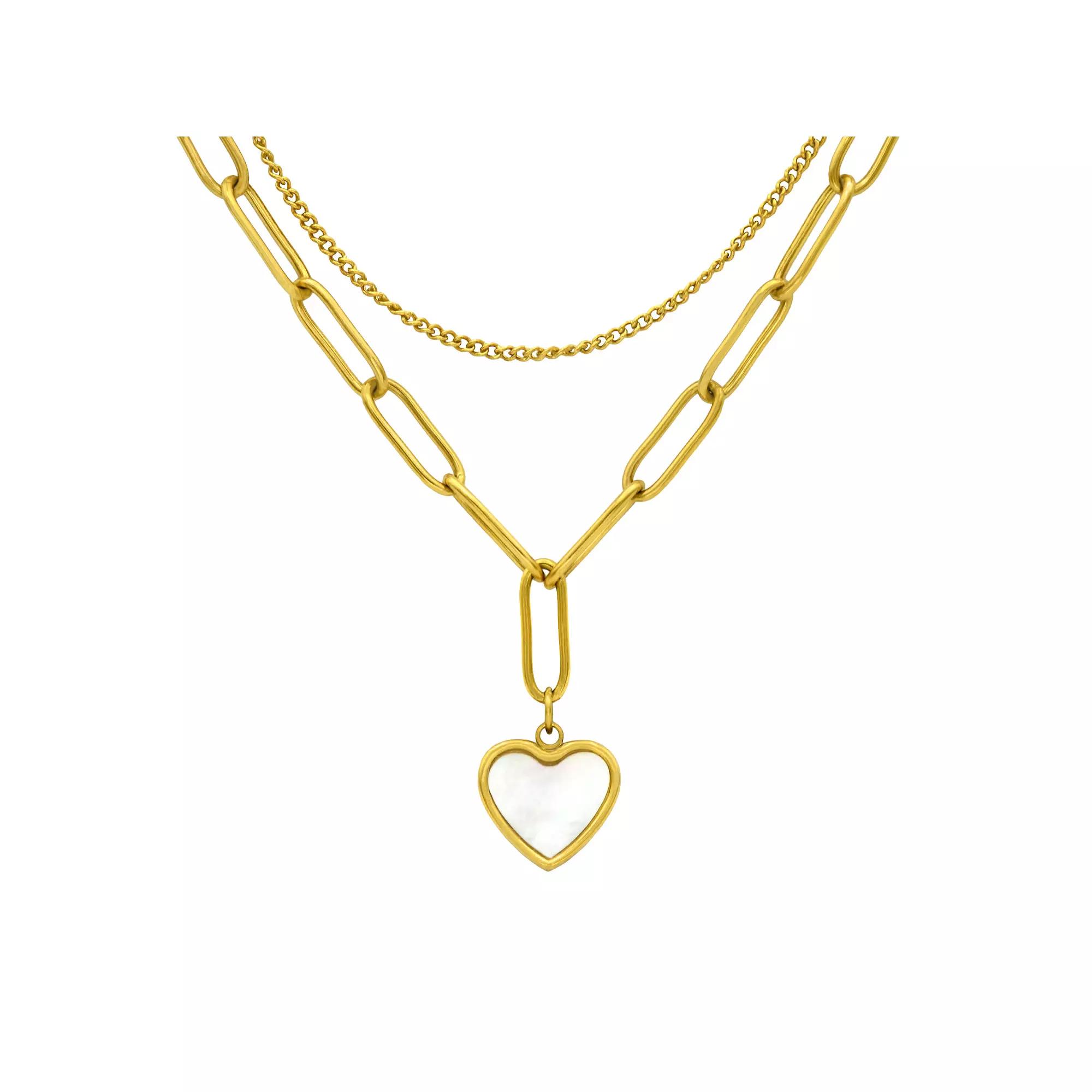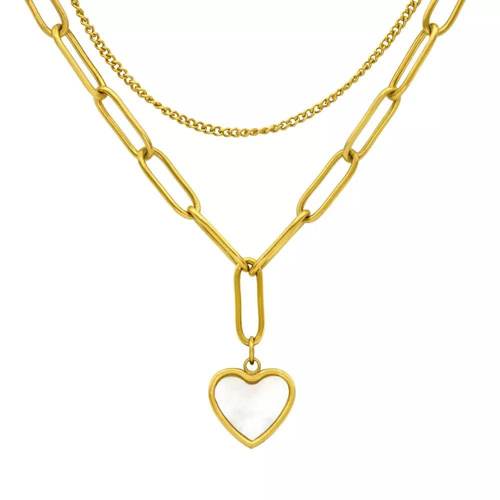 Give your jewelry box a refresh with this gold tone double strand City Luxe mother of pearl heart pendant necklace. Click on this JEWELRY & WATCHES GUIDE to learn about fit, styles, materials and more! Give your jewelry box a refresh with this gold tone double strand City Luxe mother of pearl heart pendant necklace. Click on this JEWELRY & WATCHES GUIDE to learn about fit, styles, materials and more! FEATURES Pendant length: 12 mm Chain length: 15.5 - 18 in. + 2.75-in. extender Chain type: cable, link Clasp: lobster-claw Nickel free Metal: brass Plating: gold tone Finish: polished Packaging: boxed Imported Gemstones may have been treated to enhance their appearance. Special care may be required. Please visit our Gemstone Treatment & Special Care Guide for more information. Size: 16-18" ADJ. Gender: female. Age Group: adult.