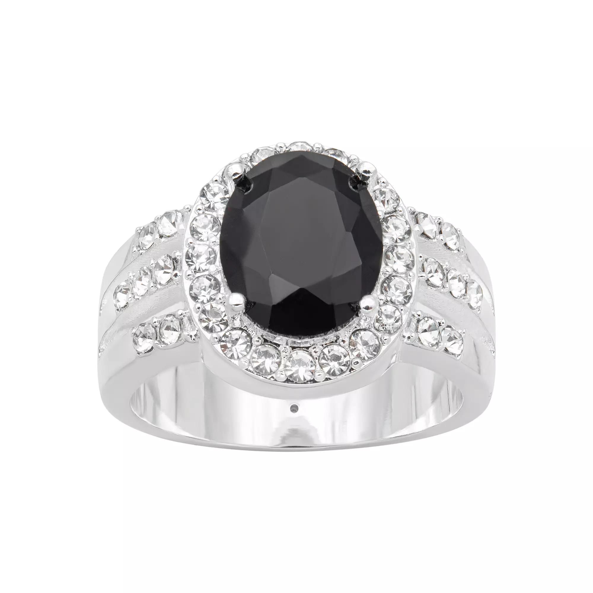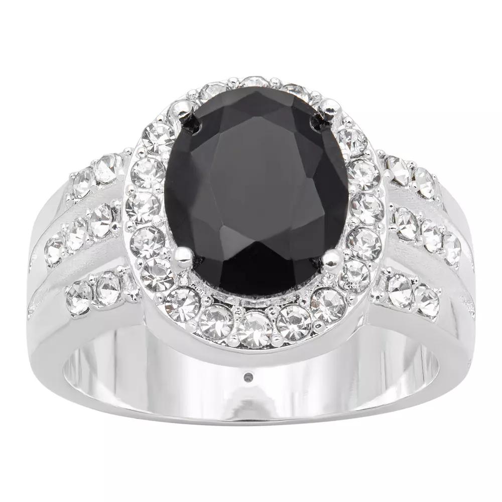 This City Luxe jet crystal oval halo ring is a bold and beautiful accent to any outfit. Click on this JEWELRY & WATCHES GUIDE to learn about fit, styles, materials and more! This City Luxe jet crystal oval halo ring is a bold and beautiful accent to any outfit. Click on this JEWELRY & WATCHES GUIDE to learn about fit, styles, materials and more! FEATURES Width: 13 mm Shank style: split Band fit: flat Metal: brass Plating: silver tone Finish: polished Packaging: boxed Crystal accents Nickel free Size: 7. Color: Black. Gender: female. Age Group: adult.