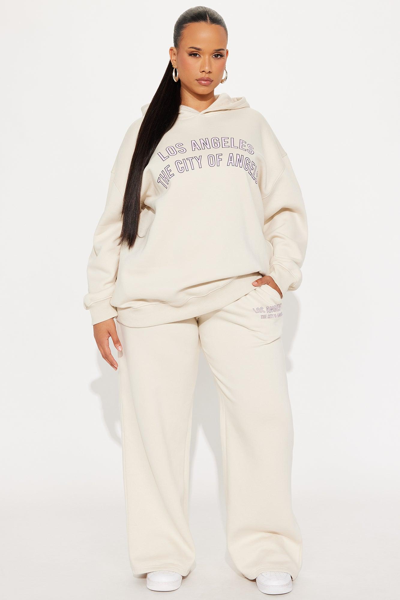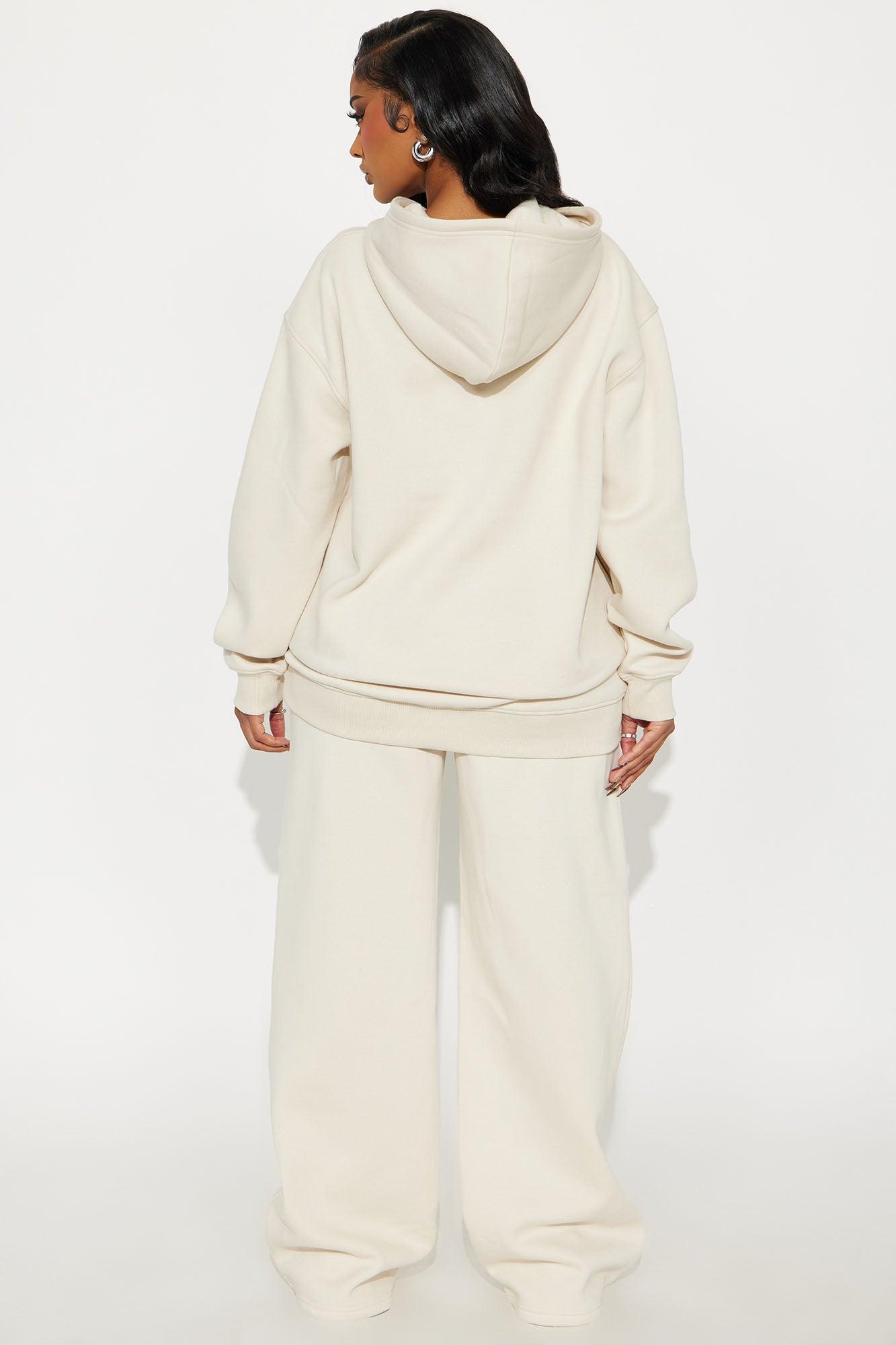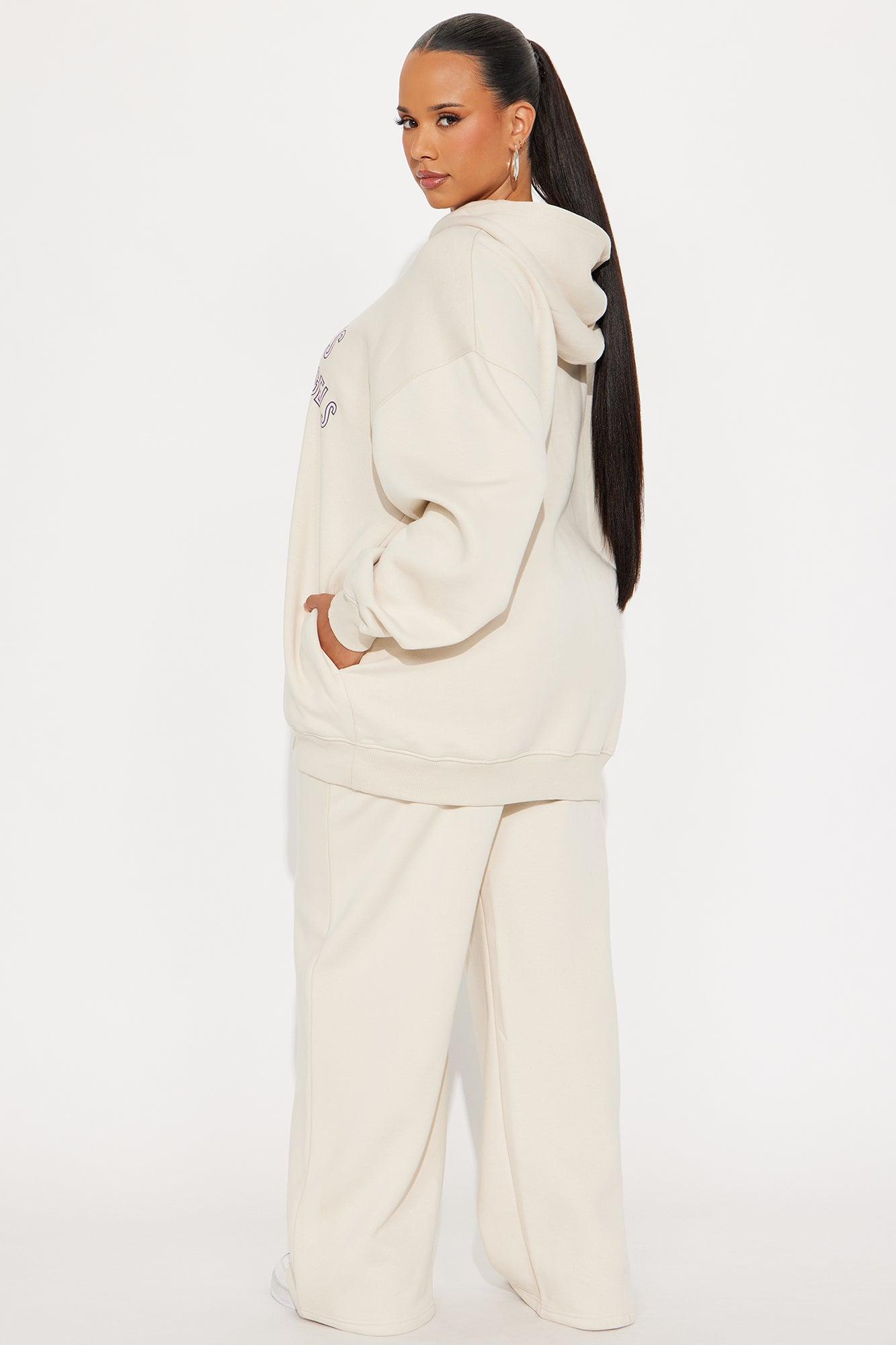 Available In Taupe. 2 Piece Ensemble Hoodie And Wide Leg Pant Set Non Stretch Inseam 32" Pockets Elastic Waistband With Inner Drawstring On Pant Disclaimer: Due To The Printing Process A Difference In Saturation May Occur. Each Garment Is Unique 60% Cotton 40% Polyester Imported