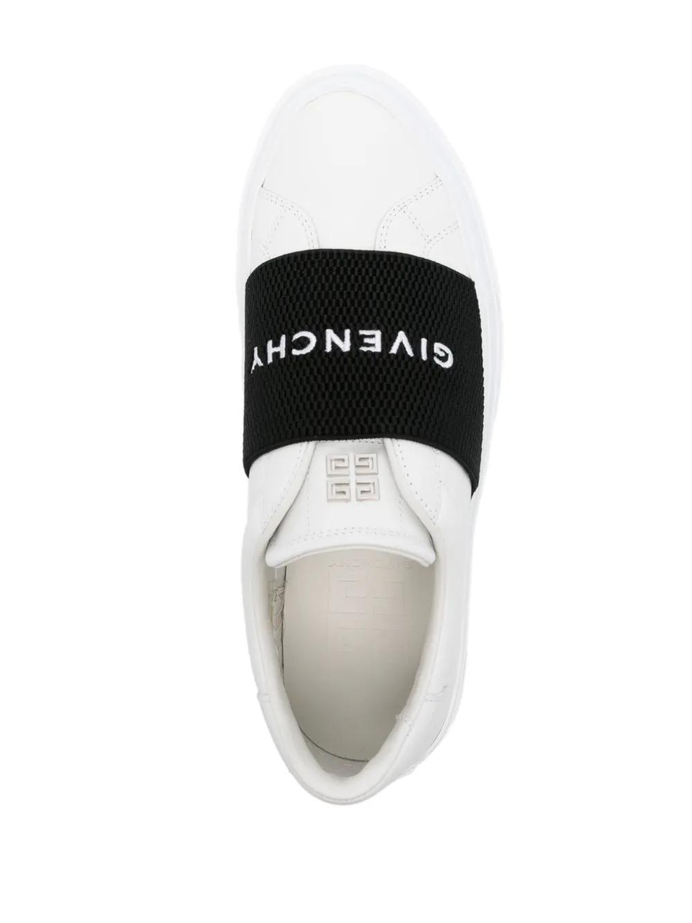 Givenchy is respected in the high-fashion and streetwear industries for its distinctively Parisian sense of style, as seen with these AW22 logo-webbing low-top sneakers, they feature the houses signature logo-print to the front.
