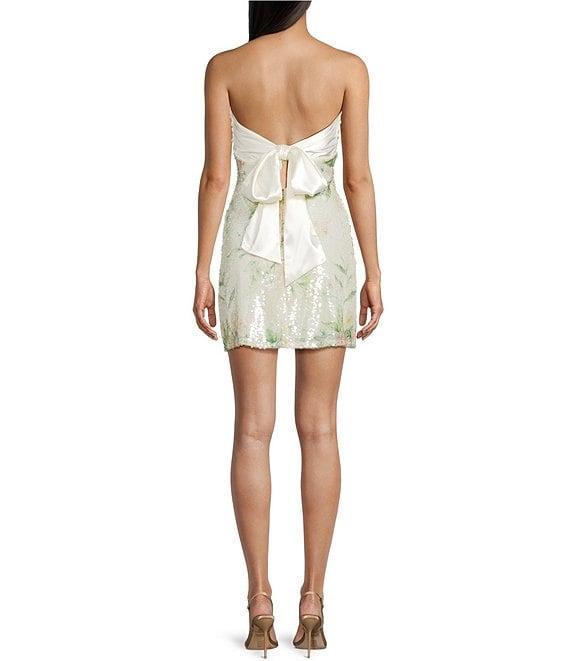 City Vibe Floral Printed Sequin Mesh Twist Front Bandeau Dress