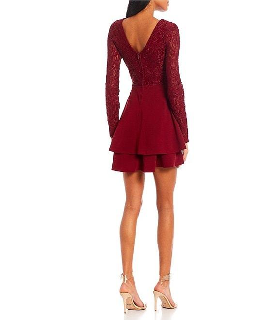 City Vibe Long Sleeve Fit-And-Flare Double Hem Lace Bodice Dress
