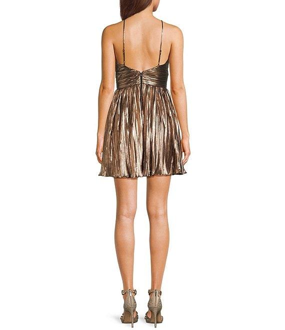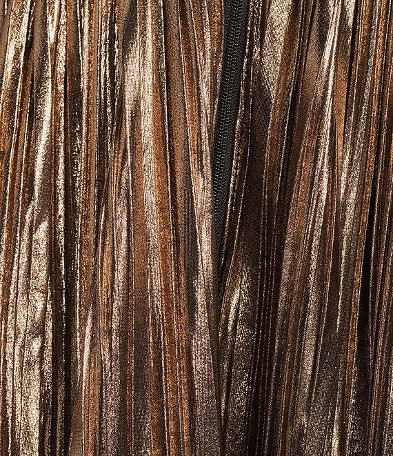 City Vibe Pleated Halter Neck Keyhole Front Shirred Waist Front Slit Dress