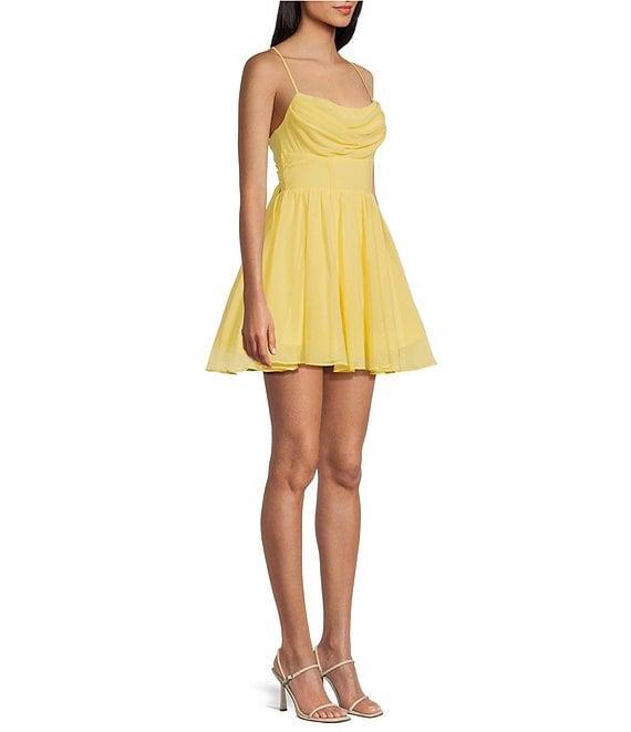 City Vibe Spaghetti Strap Cowl Neck Tie Back Party Dress