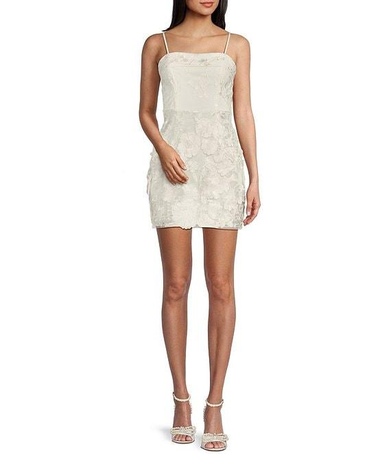 City Vibe Spaghetti Strap Square Neck 3D Flower Slim Dress