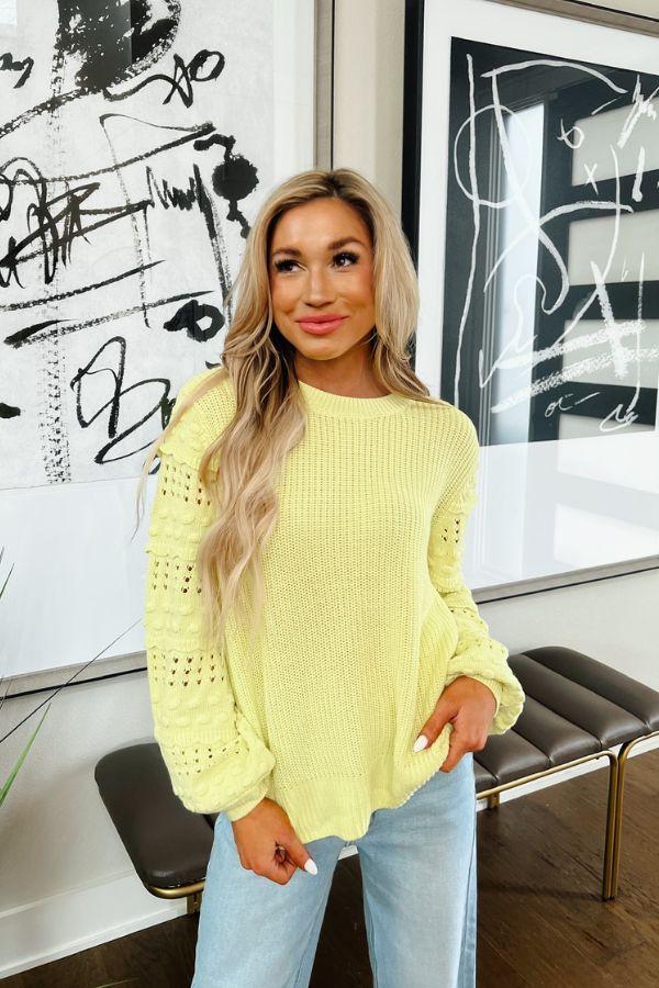 - Stay city chic in this trendy sweater! - Unlined knit material with a ribbed texture - A crew cut neckline - Long, loose, textured sleeves with scalloped accents and ribbed cuffs - A relaxed silhouette that ends in a straight hemline Measurements S : Bust 40", Hip 36", Length 22", Sleeve Length 23.5", Waist 38". M : Bust 42", Hip 38", Length 22.5", Sleeve Length 24", Waist 40". L : Bust 44", Hip 40", Length 22.5", Sleeve Length 24.5", Waist 42".