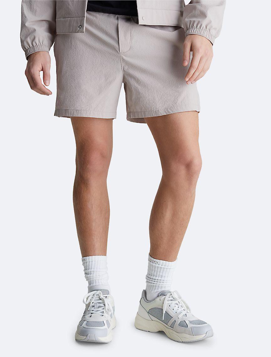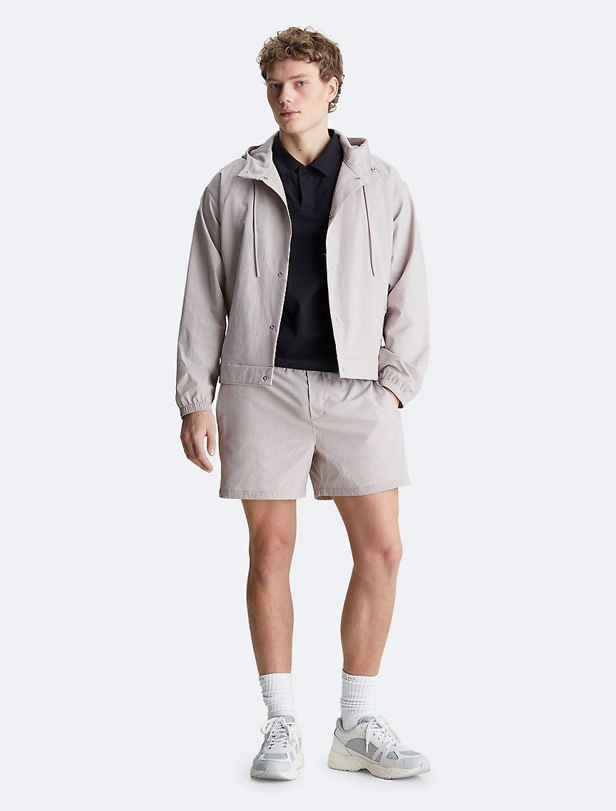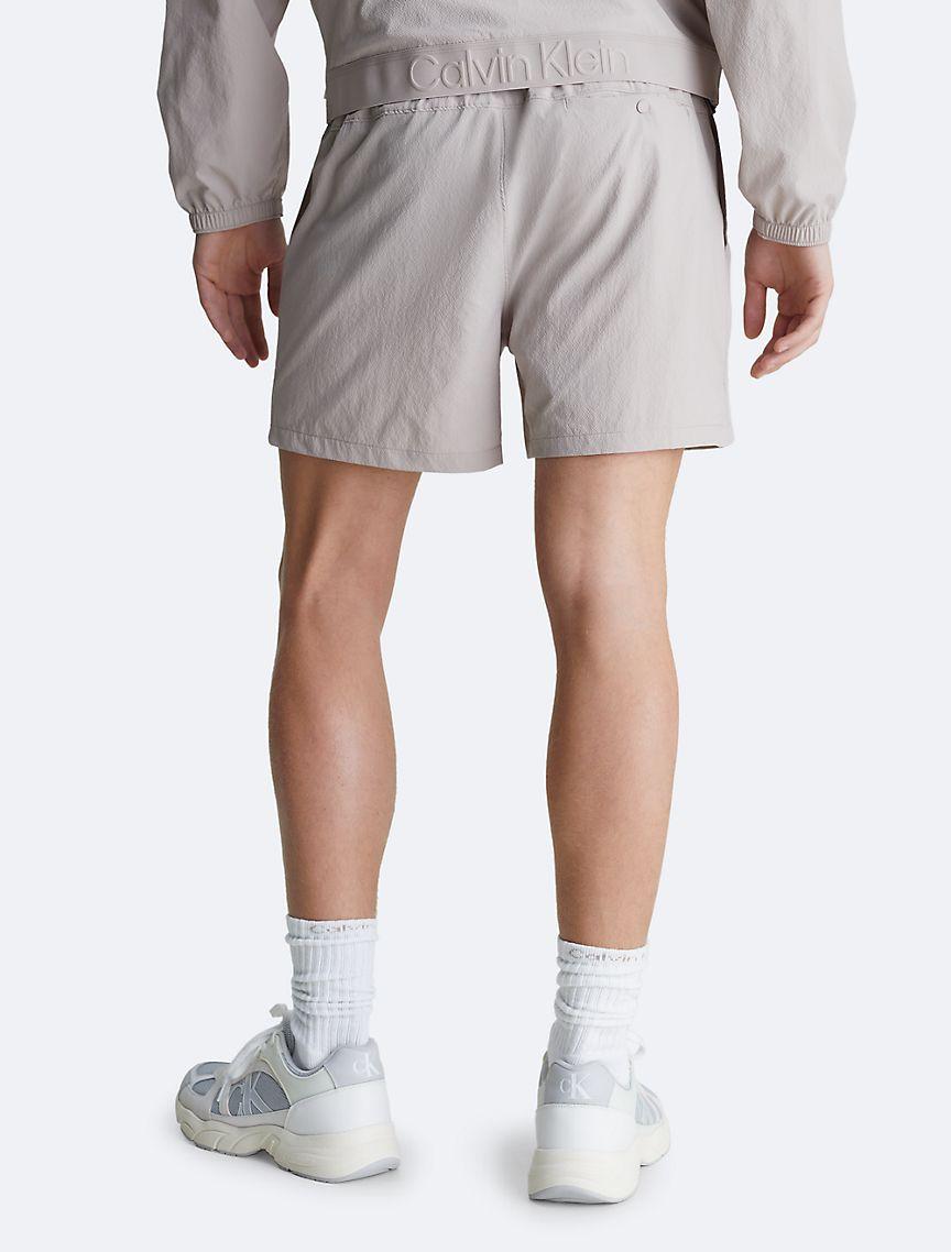 Constructed from cooling, moisture wicking fabric, these shorts are designed to support dynamic movement while maintaining comfort and breathability. Created with zip closures along the upper leg and slip pockets at both sides. Features an elastic waistband with an embossed Calvin Klein logo at the back.