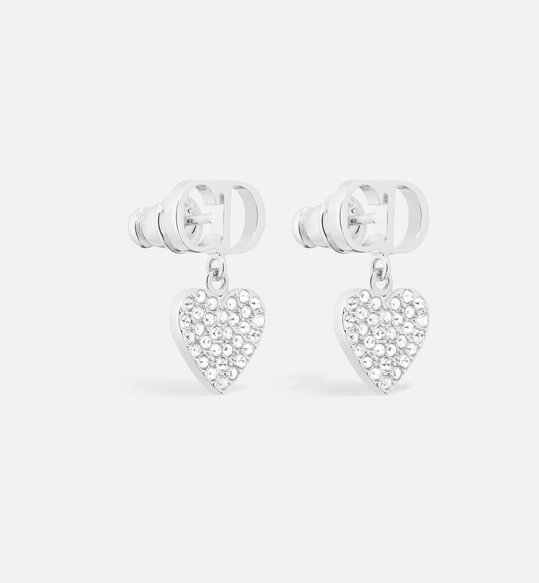 The Clair D Lune earrings are an elegant and romantic creation. The silver-finish metal style showcases heart charms with a delicate pavé of white crystals. The refined earrings can be combined with other pieces from the Clair D Lune line. White crystals. CD signatures. Heart charms. Silver-finish metal. Push clasp. Sold as a pair. Made in Portugal