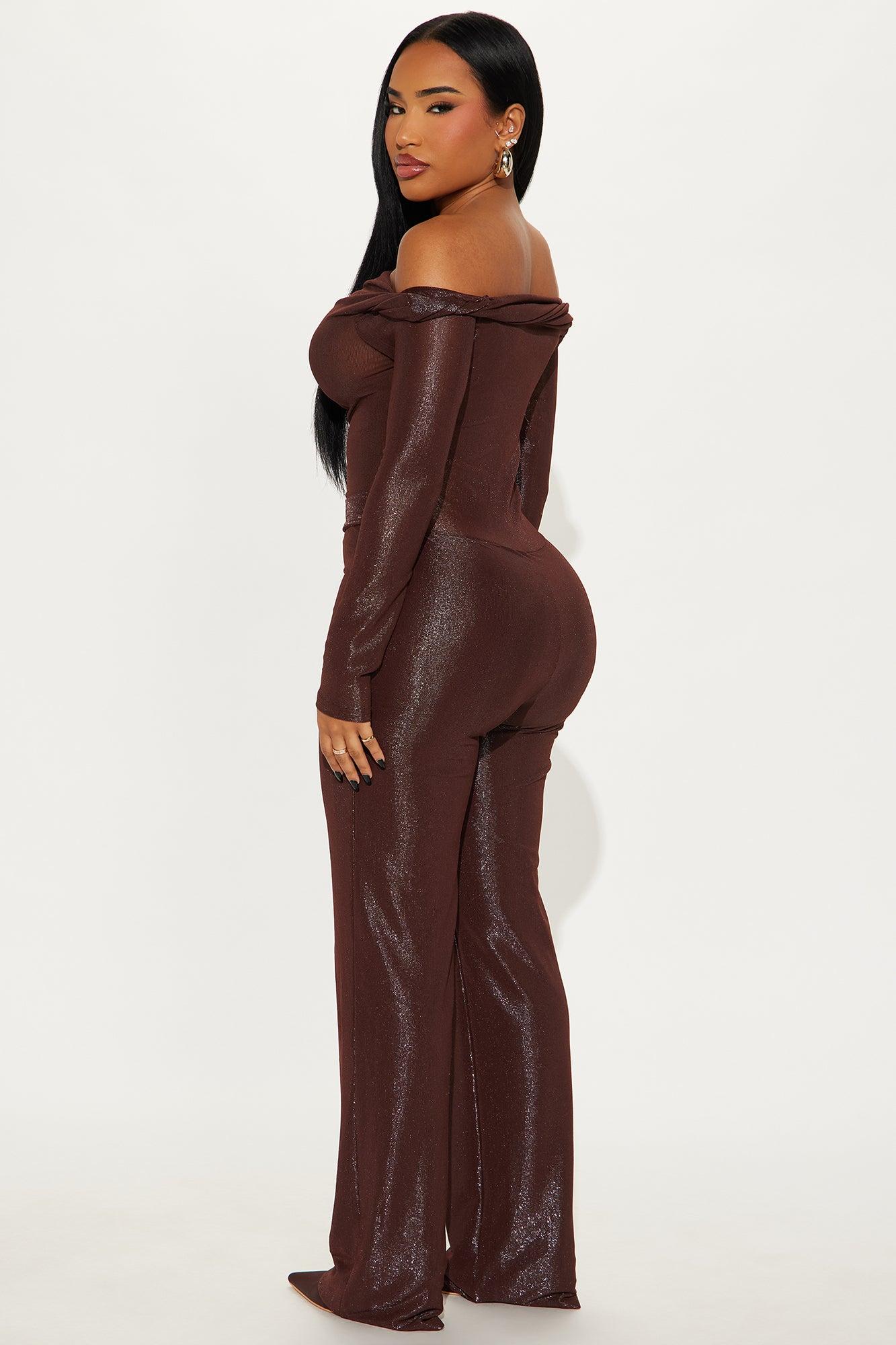 Claire Off Shoulder Metallic Knit Jumpsuit - Chocolate Female