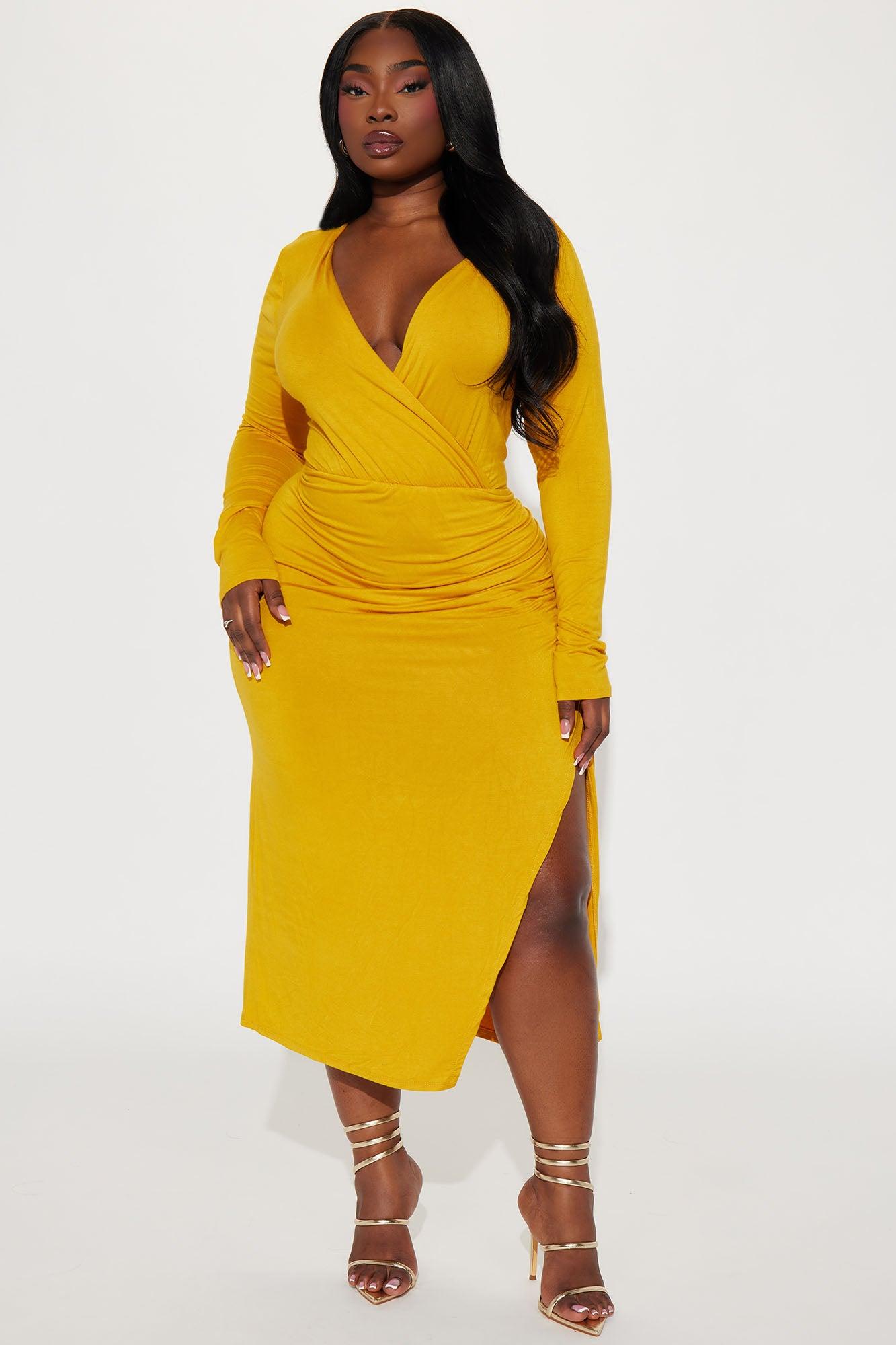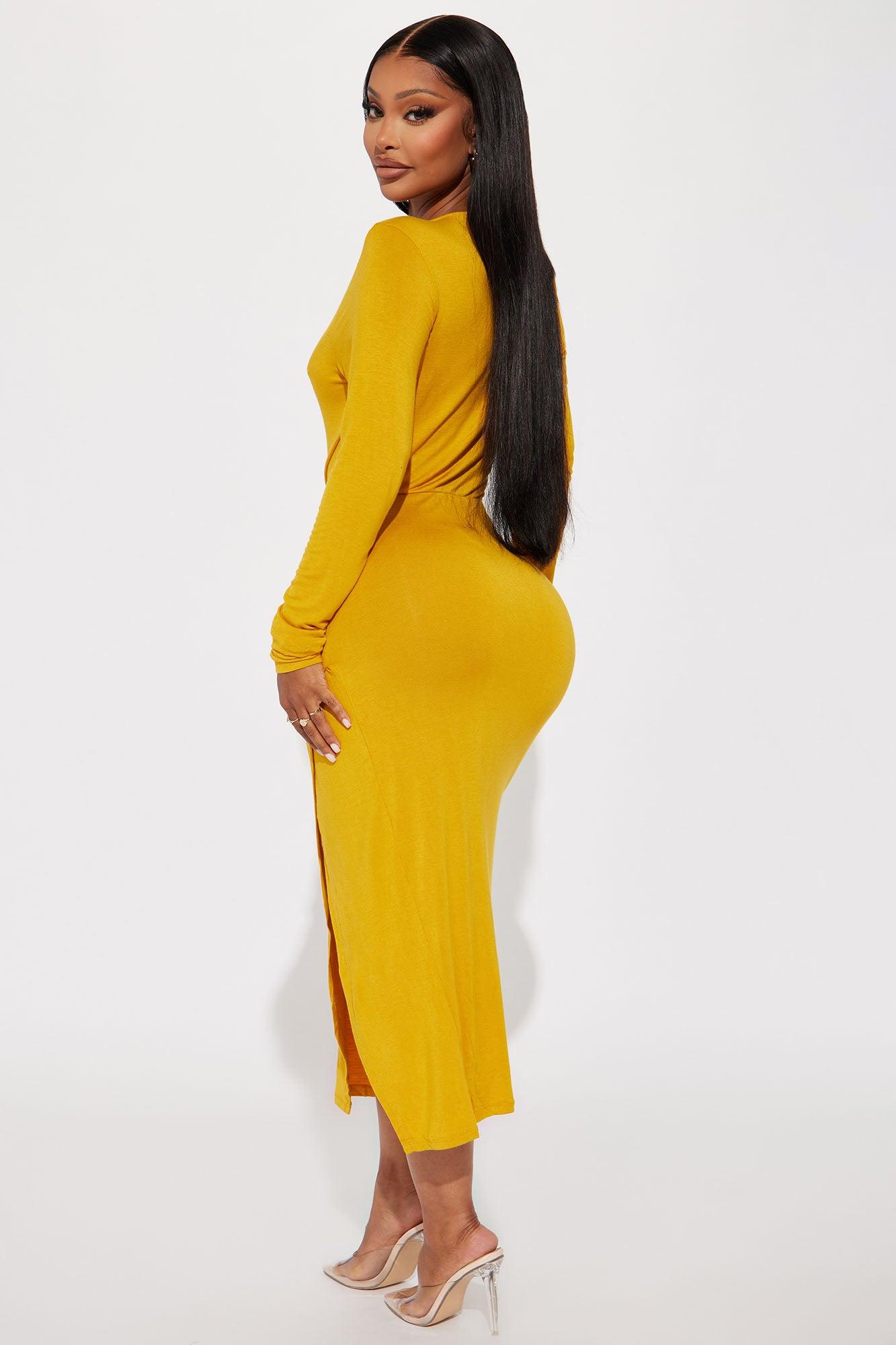 Claire Ruched Midi Dress - Mustard