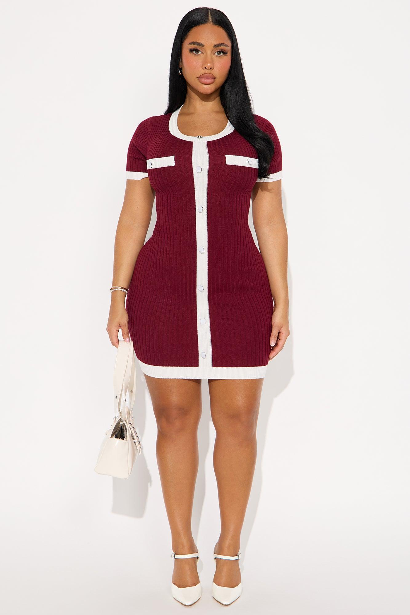 Claire Sweater Short Sleeve Mini Dress - Burgundy Female