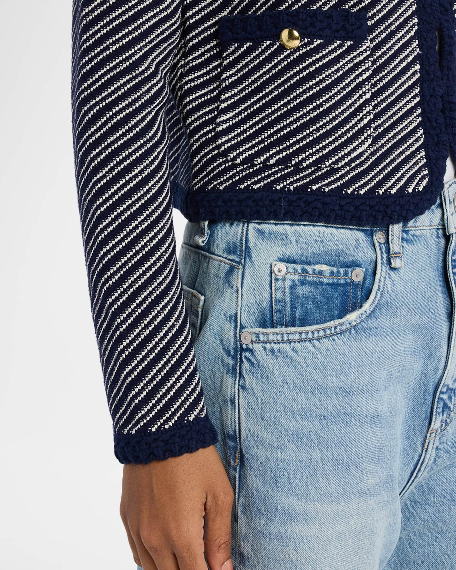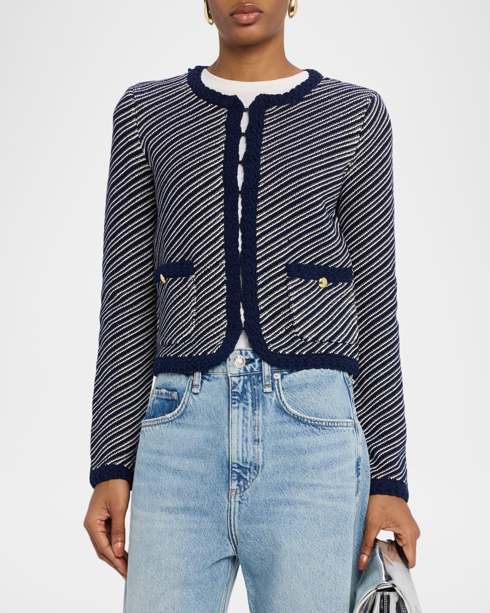 Rag & Bone "Claire" textured knit cardigan Round neckline Long sleeves Patch pockets Tailored fit Rounded hem Front hook closure Cotton/viscose/nylon/polyamide Trim: Metal Dry clean Imported Shipping Direct from Vendor, usually ships within 7 business days.