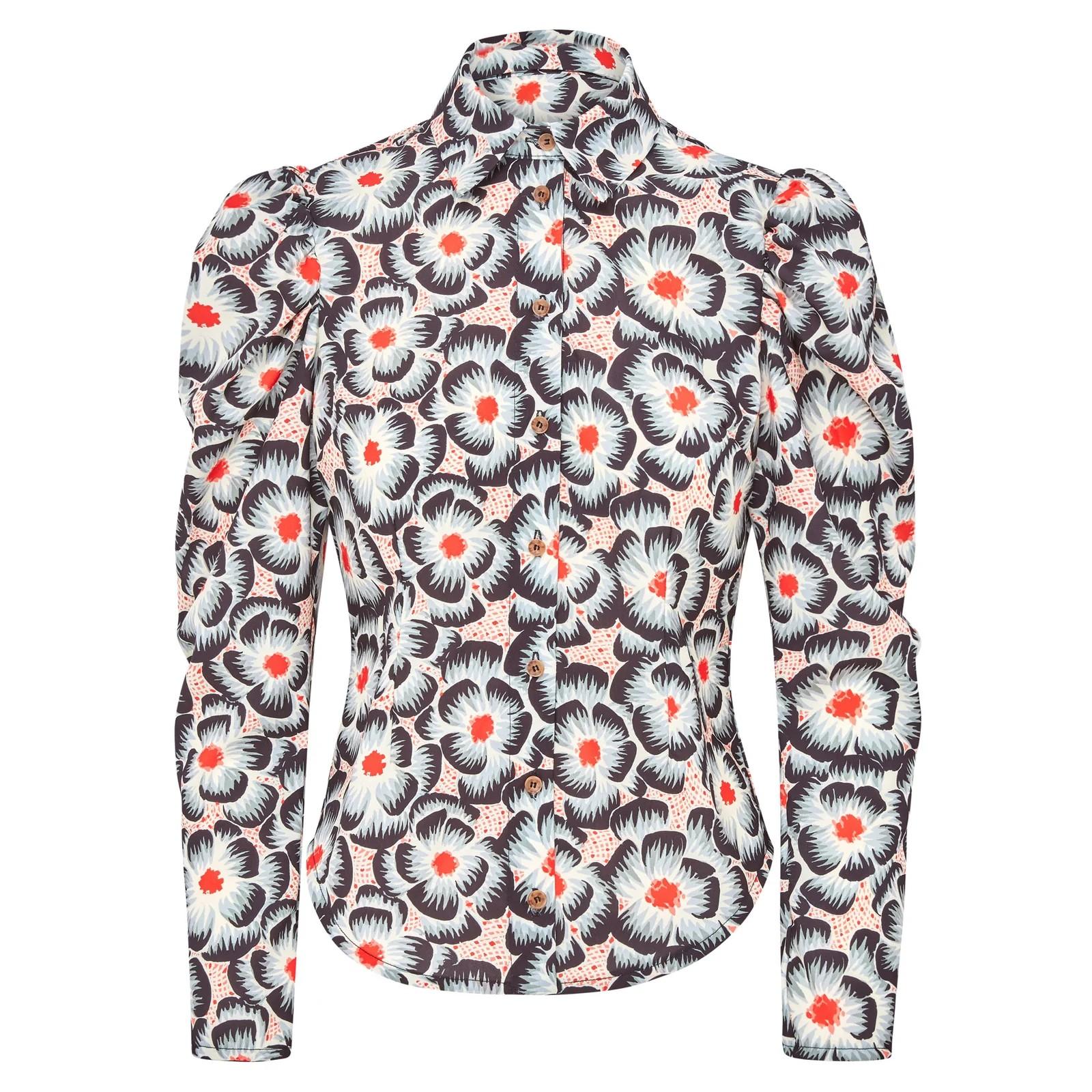 Add some playful, flowery flair to your wardrobe with the Clara Pleat Shoulder Black Flower Print Shirt. This unique and quirky top features pleated shoulders and a bold black flower print, making it perfect for adding some fun to any outfit. Feel confident and stylish in this one-of-a-kind shirt!