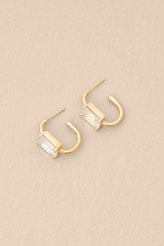 Clarise Gold Rhinestone Huggie Hoop Earrings