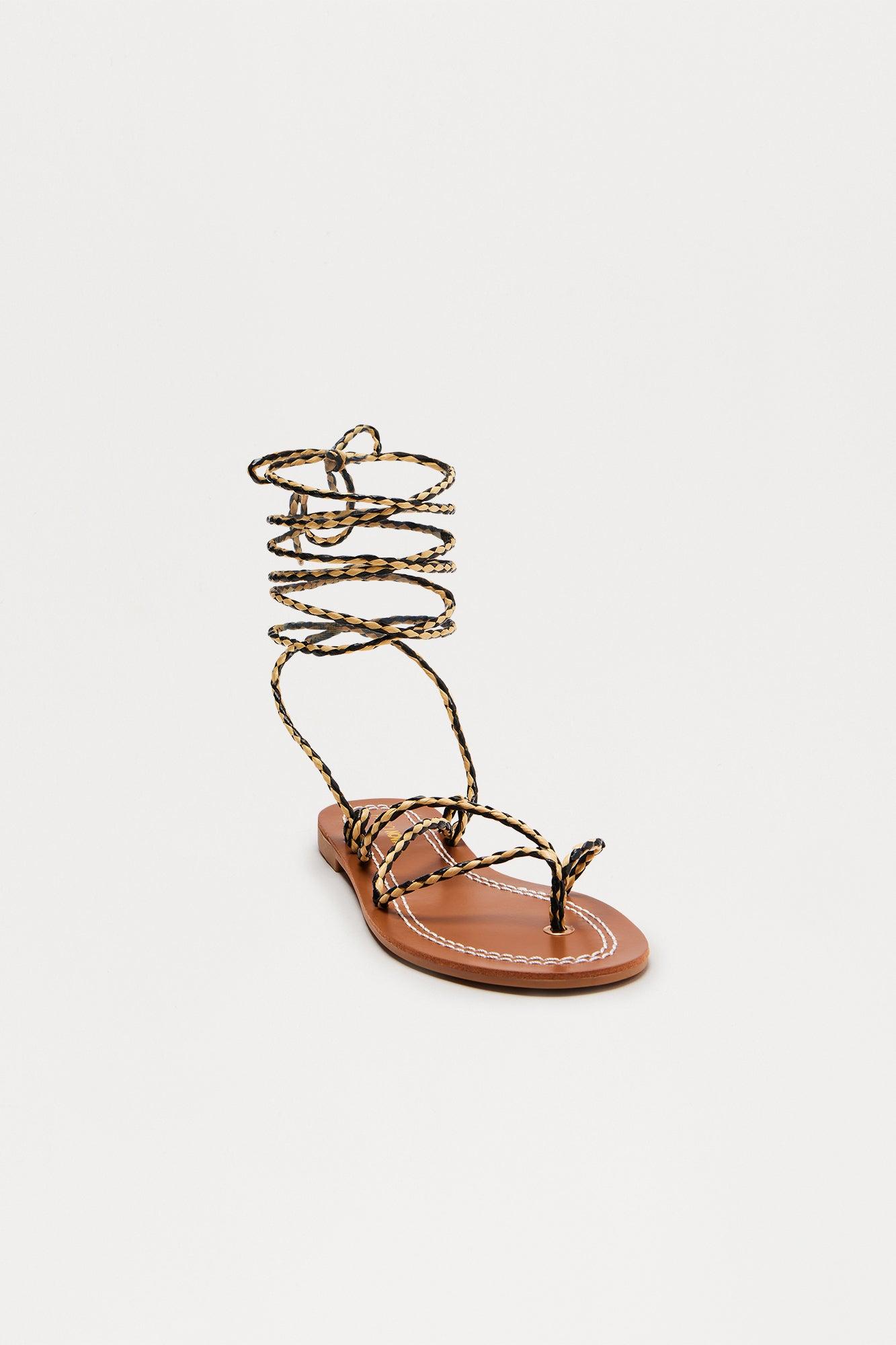 Clarissa Wrap Up Flat Sandals - Black/White Female
