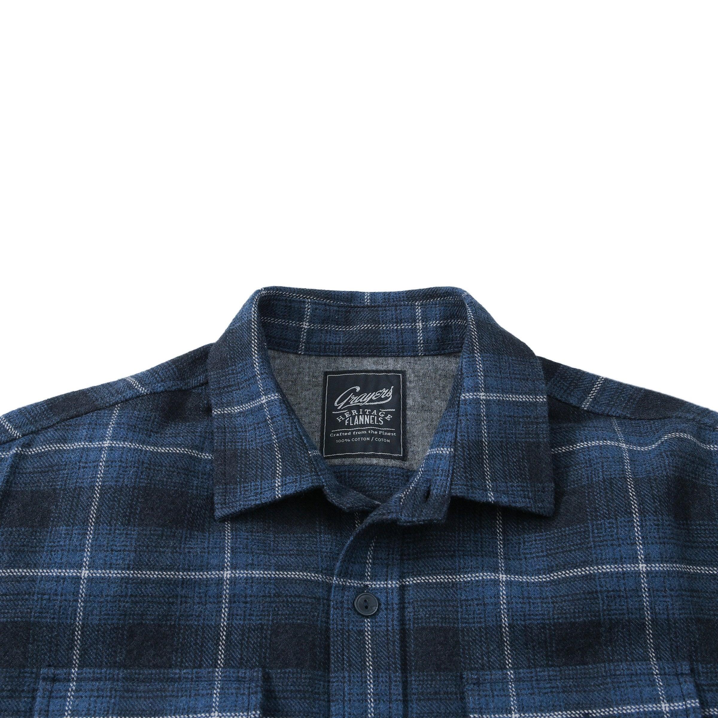 THIS ITEM IS FINAL SALE. NO REFUNDS OR EXCHANGES ALLOWED. This product will ship within 4 to 5 business days. It may arrive separately from other products in your cart. Built to last, best selling flannels. Last 100 years? Built like a Mack truck? As soft as a babys bottom? Yes, yes, and yes. Weighing in at 8.7 ounces, the Clarke Heritage flannel has old school cool written all over it with its heathered blue and charcoal plaid. It's made out of the softest heather brushed twill flannel out there. What makes it extra special? We design all of our own stripes, patterns and plaids. We weave our own fabric. And our fit is on point. Wear it open like a work shirt or buttoned-up. Chest pockets each with a button closure Finished with a chambray yoke, cuffs and placket Grayers signature Modern Fit 100% Cotton IMPORTED. THIS ITEM IS FINAL SALE. NO REFUNDS OR EXCHANGES ALLOWED.
