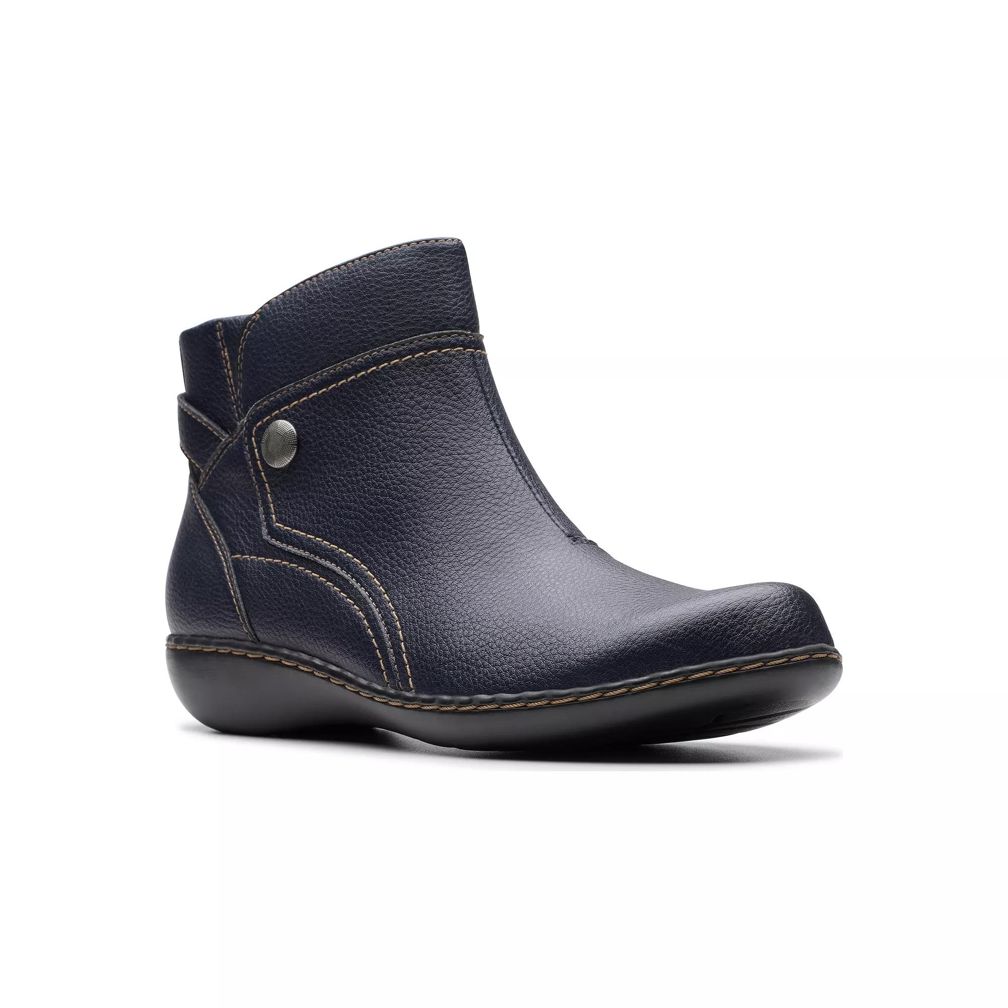 Step into style with these Clarks Ashland Mabel womens leather ankle boots. Click this FOOTWEAR GUIDE to find the perfect fit and more! Step into style with these Clarks Ashland Mabel womens leather ankle boots. Click this FOOTWEAR GUIDE to find the perfect fit and more! FEATURES Flexible, lightweight sole Durable upper Grippy upperDETAILS Leather upper Textile lining TPR outsole Almond toe Zipper closure Non-skid outsole 1.4-in. heel Spot clean Imported Size: 12. Color: Navy Tumbled. Gender: female. Age Group: adult.