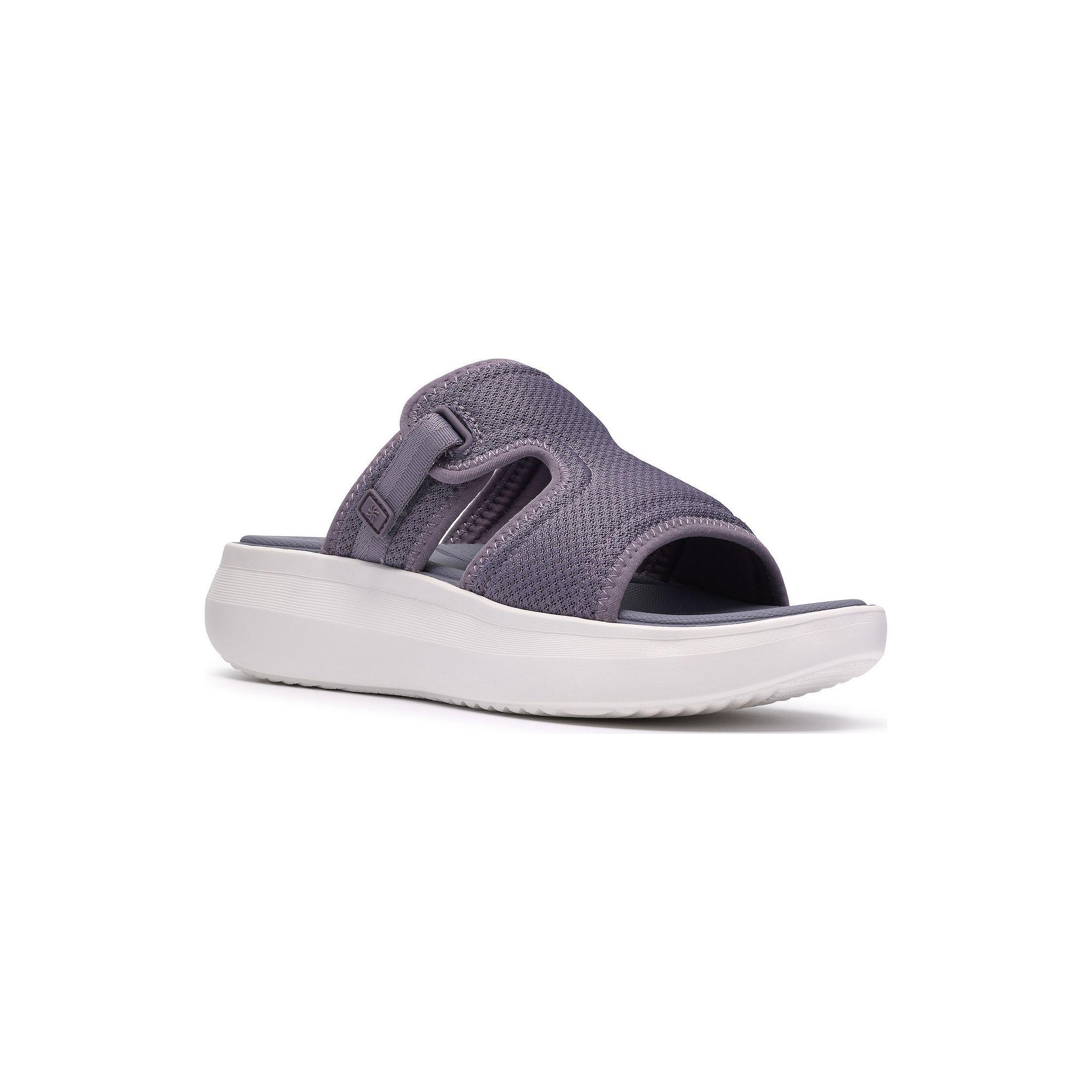 Step into comfort with these Clarks wedge sandals that are all about keeping your feet happy and stylish. With breathable uppers that let your toes breathe and an ultra-light outsole that feels like walking on clouds, you'll be ready to tackle whatever the day brings, whether you're out for a stroll or dancing the night away. Click this FOOTWEAR GUIDE to find the perfect fit and more! - https://www.kohls.com/feature/shoesizeguide.jsp. FEATURES: Breathable uppers keep things cool and fresh, Adjustable hook-and-loop tape strap offers a secure, custom fit, PillowSoft™ footbed provides cloud-like cushioning, Solevana Foam offers a super-light outsole that softens every step. MATERIAL & CARE: Textile upper, EVA outsole, Textile lining, Foam footbed, Spot clean. DETAILS: Hook-and-loop tape closure, Multi-directional outsole, Open toe, 1.96-in. heel height, Imported. Size: 8. Color: Purple Gray. Gender: female. Age Group: adult. Material: SYNTHETIC.