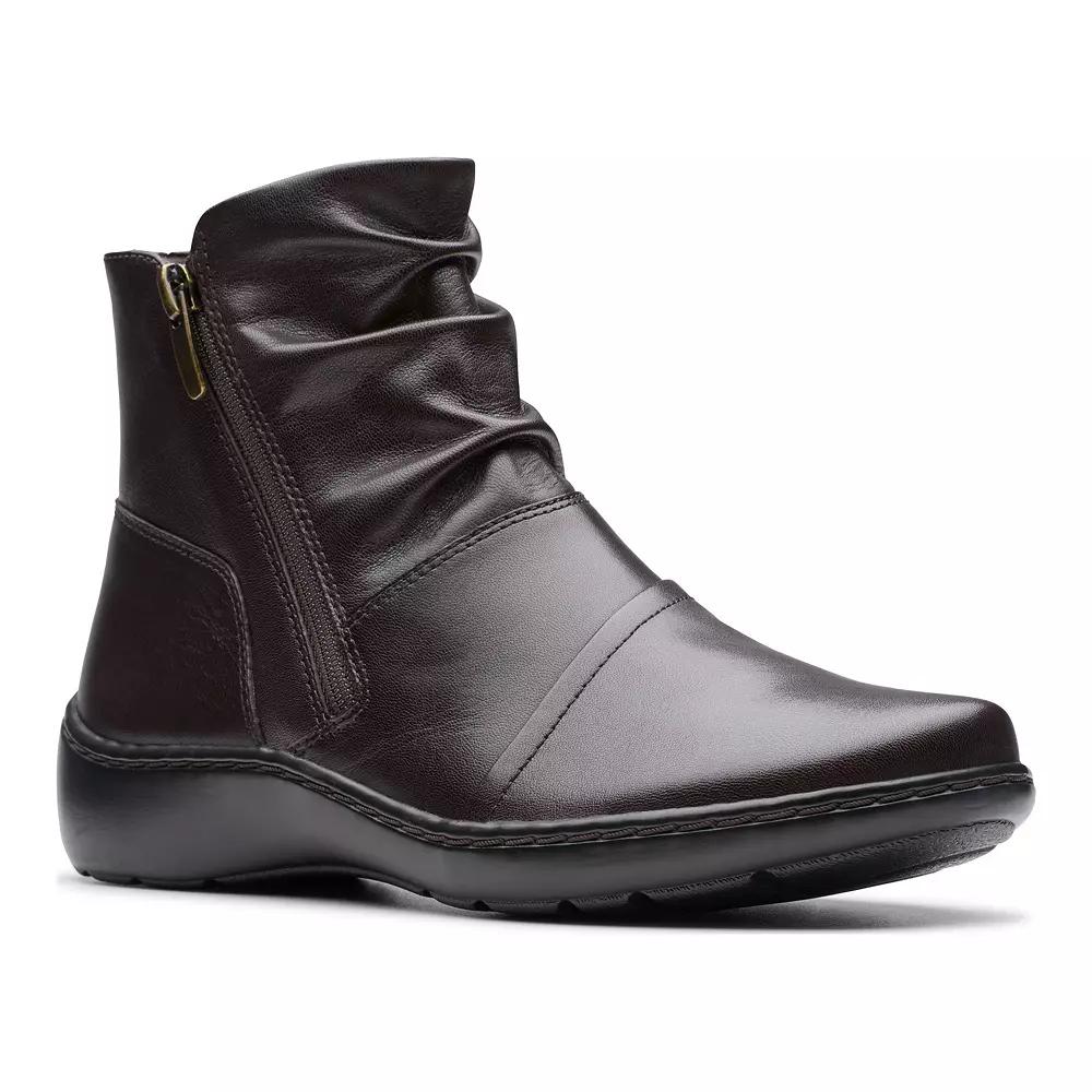 Step on in style with these Clarks Cora Pace Womens Leather Boots.Click this FOOTWEAR GUIDE to find the perfect fit and more! Step on in style with these Clarks Cora Pace Womens Leather Boots.Click this FOOTWEAR GUIDE to find the perfect fit and more! FEATURES Side zip for easy on and off Comfort footbed Side interior plastic panel for added flexibilityDETAILS Leather upper Textile lining TPR outsole Round toe Zipper closure Non-skid outsole 1.77 in. heel height 11 in. boot shaft height Spot clean Imported Size: 5. Color: Chocolate. Gender: female. Age Group: adult.