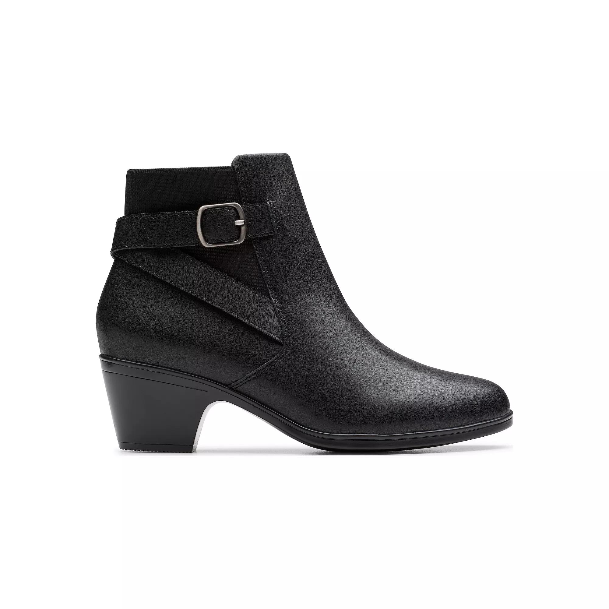 Discover timeless elegance with these chic ankle boots from Clarks, designed for effortless styling every day. The sophisticated buckle detail adds a touch of flair, while the signature underfoot cushioning ensures you stay comfortable, no matter where your day takes you. Click this FOOTWEAR GUIDE to find the perfect fit and more! - https://www.kohls.com/feature/shoesizeguide.jsp. FEATURES: Versatile ankle boot for all-day everyday styling, Crafted leathers complement the foot perfectly, Clarks Collection signature underfoot cushioning for easy and free steps. DETAILS: Flex groove outsole, Pointed toe, Zipper closure, Heel height: 2.16 inches, Imported. FIT & SIZE: Ankle boot shaft, Shaft circumference: 4.72 inches, Shaft height: 3.93 inches. MATERIAL & CARE: Leather upper, Foam footbed, Textile lining, TPR outsole, Spot clean. Size: 5.5. Color: Black Leather. Gender: female. Age Group: adult.