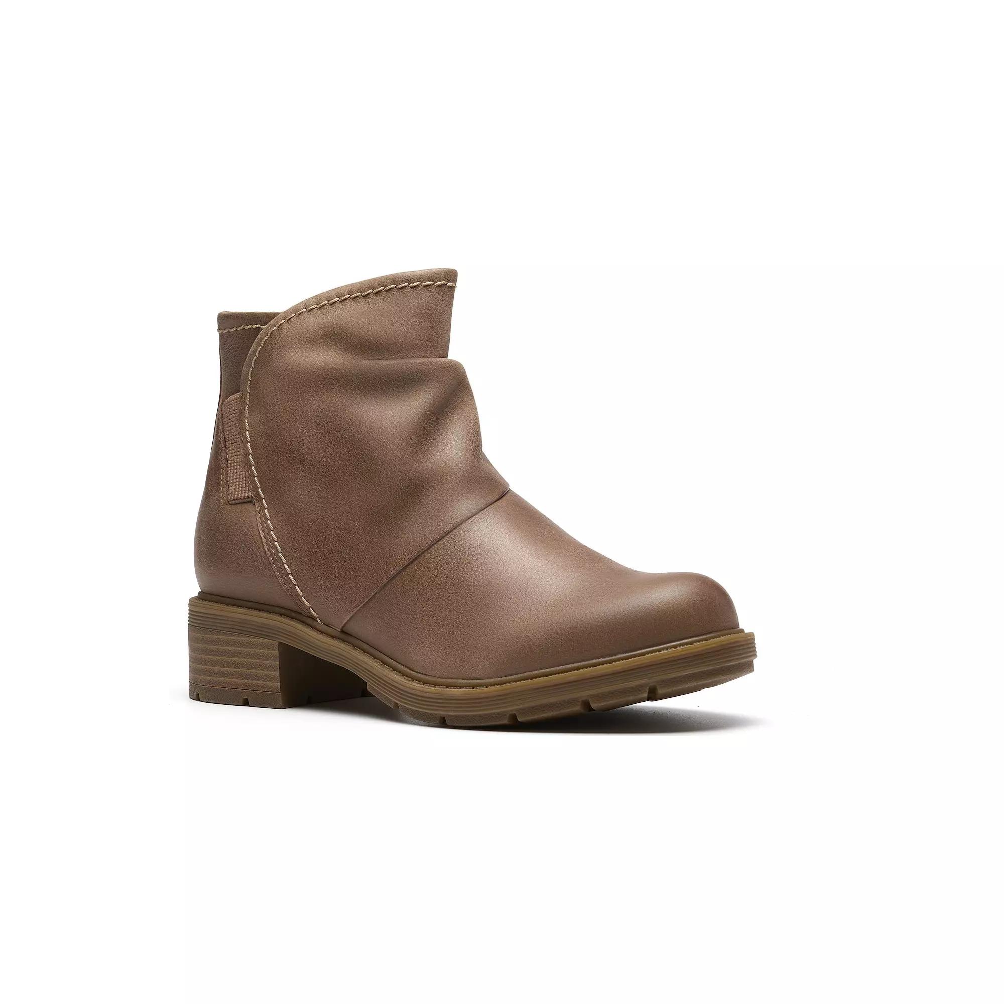 Embrace effortless style with the sleek heart of Clarks. The Hearth Sofia ankle boots feature smooth leather and subtly flexible stretch panels, ensuring you enjoy all-day comfort and support, perfect for pairing with your favorite casual outfits. Designed for stability and traction, these boots effortlessly blend function with chic simplicity, making them a must-have for your wardrobe. Click this FOOTWEAR GUIDE to find the perfect fit and more! - https://www.kohls.com/feature/shoesizeguide.jsp. FEATURES: Smooth, undecorated leather uppers for a sleek look, Subtle stretch panels for a comfortable, flexible fit, Ultimate Comfort foam footbed for lasting cushioning, Grippy and flexible TPR sole for extra stability and traction, Heel height: 45mm. DETAILS: Almond toe, Zipper closure, Heel height: 1.77 inches, Multi-directional outsole, Imported. FIT & SIZE: Ankle boot shaft detail, Shaft circumference: 9.44 inches, Shaft height: 4.52 inches. MATERIAL & CARE: Leather upper, Foam footbed, Textile lining, TPR outsole, Spot clean. Color: Dark Sand Leather. Gender: female. Age Group: adult.