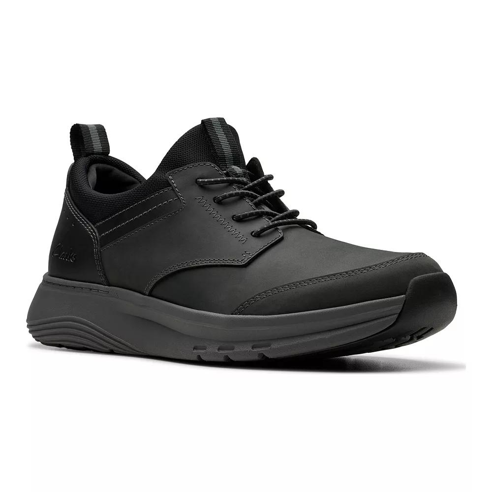 Crafted from premium leather combined with Motion Tread Technology, these Clarks men's shoes are designed to propel you through each and every day with comfort and ease.Click this FOOTWEAR GUIDE to find the perfect fit and more!Crafted from premium leather combined with Motion Tread Technology, these Clarks men's shoes are designed to propel you through each and every day with comfort and ease. Click this FOOTWEAR GUIDE to find the perfect fit and more!FEATURES Elastic lacing and stretch collar offers easy on/off and a secure, personalized fit Molded comfort foam footbed delivers lasting cushioning Motion Tread Technology and rocker heel support your natural walking motion Dual-density TR (thermoplastic rubber) outsole supports comfortable and confident steps Provides arch supportDETAILS Premium leather upper Textile lining EVA midsole and outsole EVA outsole Moc toe Lace-up Closure Molded comfort foam footbed 1.2-in. heel height Spot clean Imported Size: 10.5. Color: Black. Gender: male. Age Group: adult.