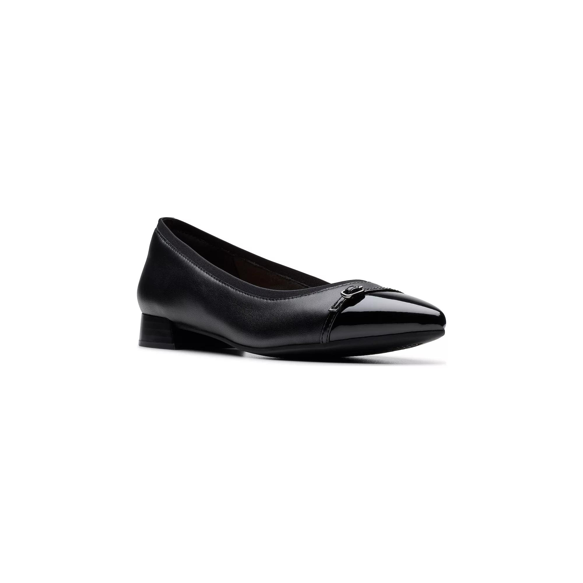 Discover the perfect blend of style and comfort with Clarks' sleek flat, featuring a timeless pointed toe and a chic buckle trim. Designed for all-day wear, its Ultimate Comfort foam footbed and flexible sole ensure that you move confidently from the office to after-hours. Click this FOOTWEAR GUIDE to find the perfect fit and more! - https://www.kohls.com/feature/shoesizeguide.jsp. FEATURES: Subtle buckle trim. DETAILS: Leather upper, Textile lining, TPR outsole, Pointed toe, Slip-on, Polyurethane footbed, Flex groove outsole, 1-in. heel, Spot clean, Imported. Size: 9.5. Color: Black Leather. Gender: female. Age Group: adult.