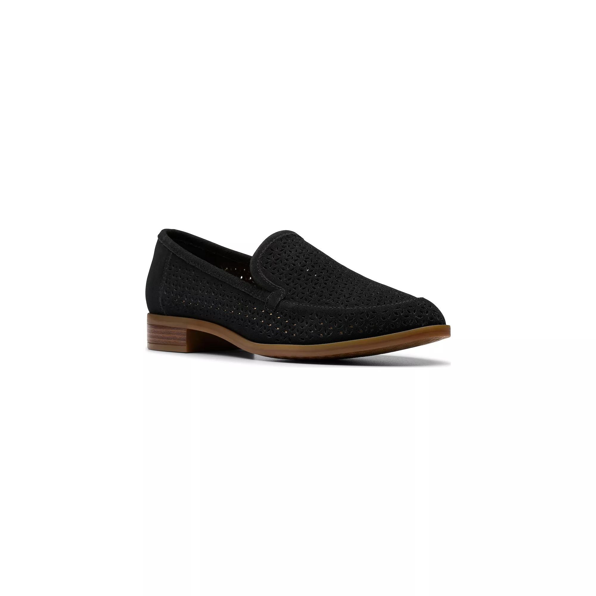 Step-up your shoe game with these women's suede loafers from Clarks.Click this FOOTWEAR GUIDE to find the perfect fit and more!Step-up your shoe game with these women's suede loafers from Clarks.Click this FOOTWEAR GUIDE to find the perfect fit and more!FEATURES Removable insole Flexible outsoleDETAILS Suede upper Textile lining TPR outsole Pointed toe Slip-on Foam footbed 1-in. heel height Spot clean Imported Size: 6.5. Color: Black Suede. Gender: female. Age Group: adult.