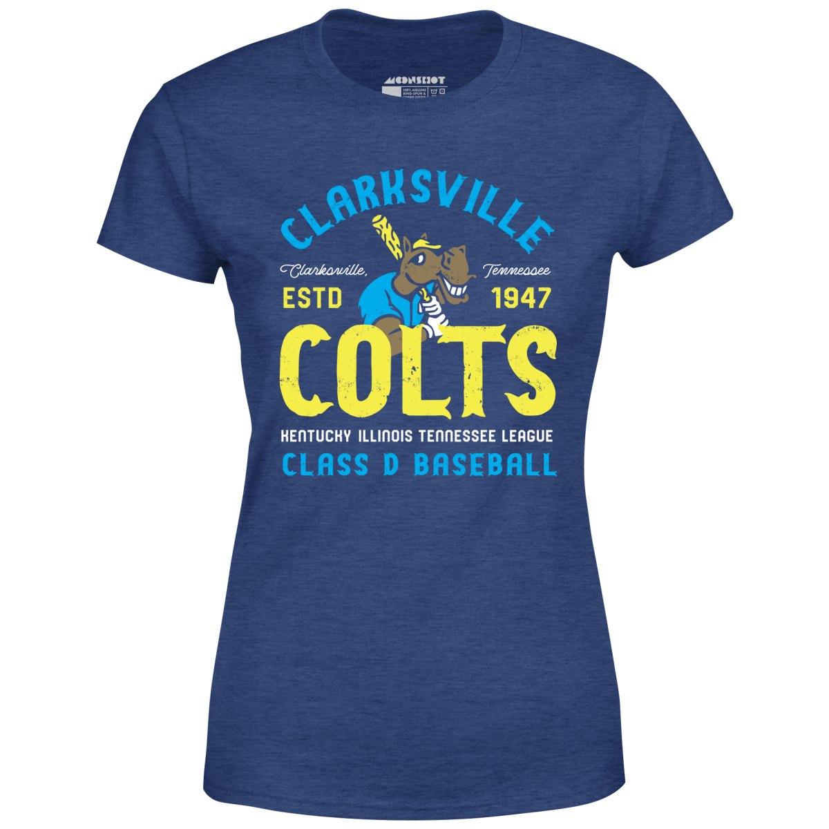 The Clarksville Colts were a Minor League Baseball team that played in the Class D Kentucky–Illinois–Tennessee League (KITTY League) from 1946 until 1949. They were based in Clarksville, Tennessee. This design is part of our old school retro baseball tees inspired by the vintage and defunct Minor League Baseball teams of yesteryear. Printed on our super soft 100% ringspun & combed cotton women's T-Shirt. Or upgrade to our Luxury 52/48 cotton/poly vintage heather edition for an even softer classic look. We print & ship all of our high quality graphic tees in the USA.