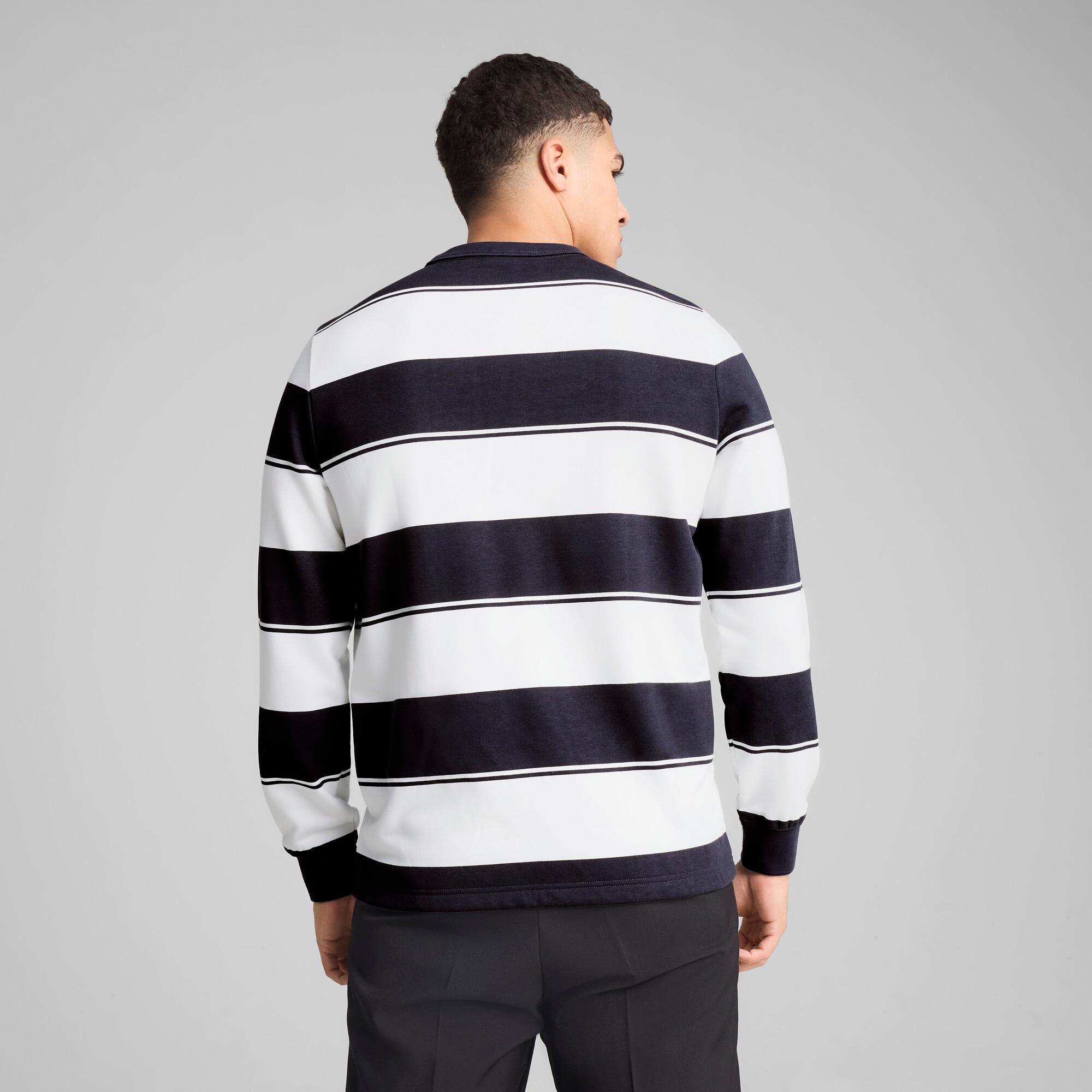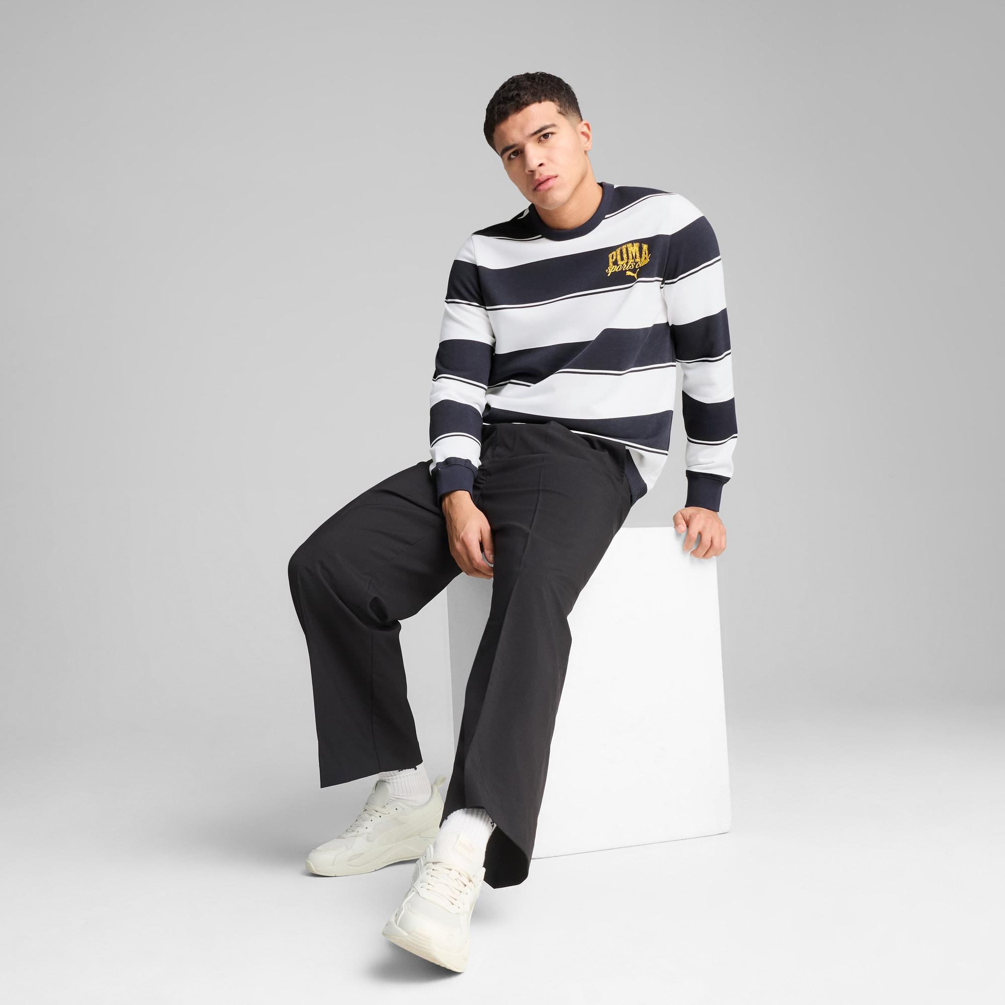 Featuring An All-Over Print And Graphic Rubber Details, This Puma Crew Brings Vibrant Energy To Your Wardrobe. Rib Cuffs Add A Touch Of Classic Style, Making It Perfect For Those Who Love To Mix Bold Design With Everyday Wear. Features & Benefits Made With At Least 20% Recycled Cotton Details Regular Fitcrew Neckribbed Cuffslong Sleevespuma Allover Printpuma Branding Details | | PUMA Class Men's Striped Crew Sweatshirt in Blue, Size XS
