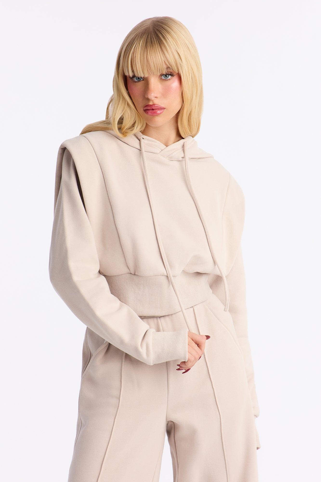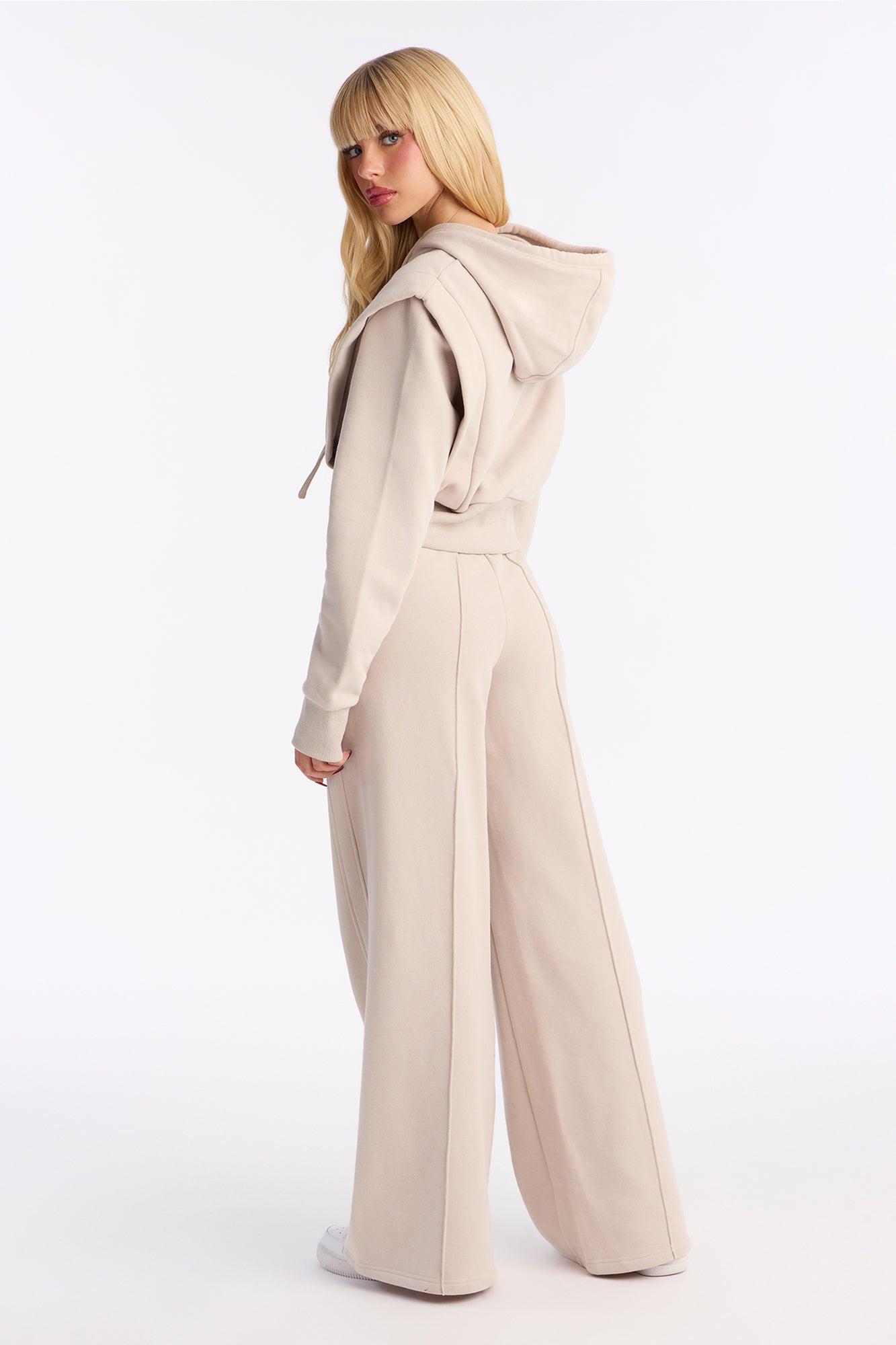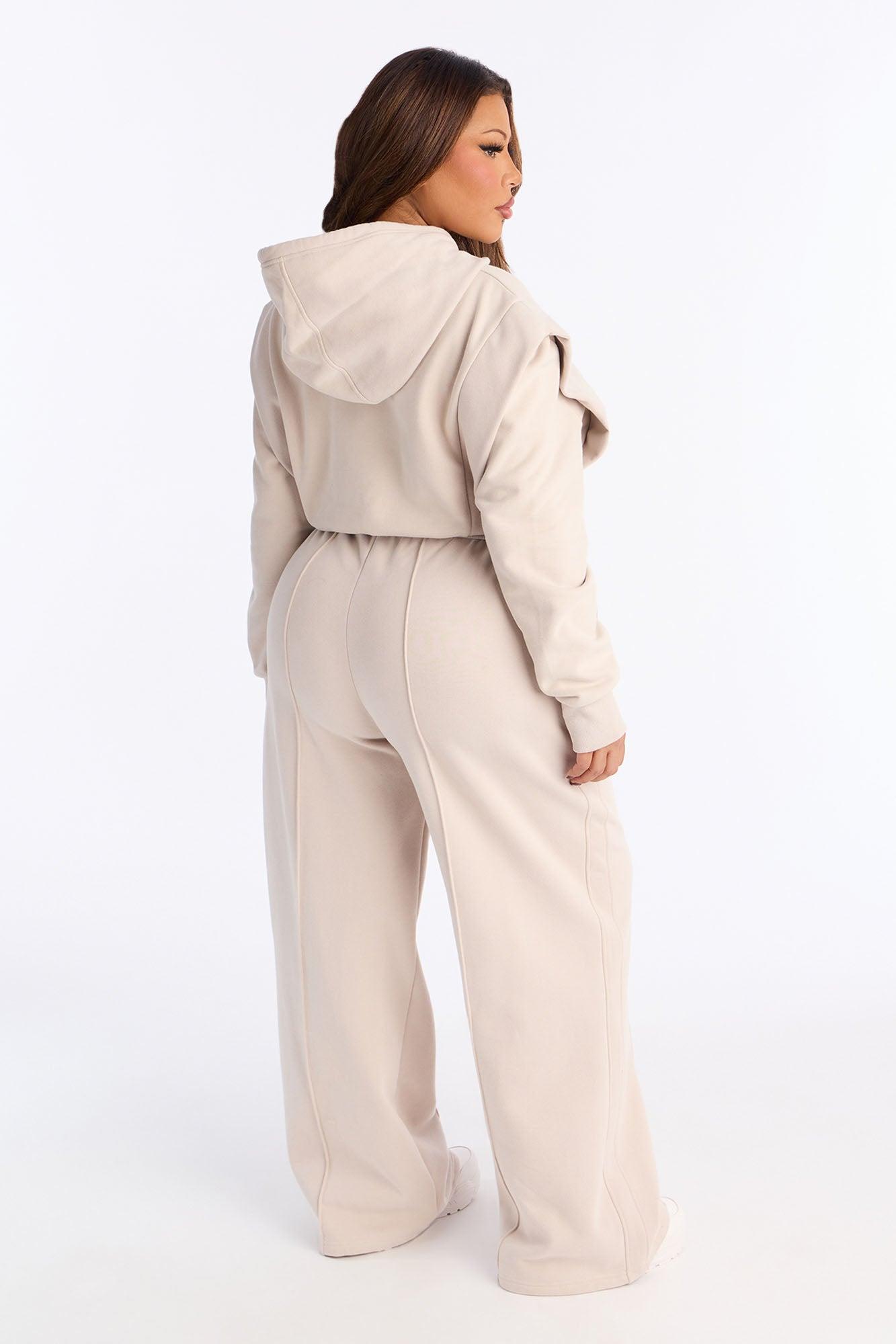 Available In Taupe. 2 Piece Ensemble Sweatshirt Hoodie And Pant Set Stretch Drawstrings Elastic Waistband Wide Leg 31" Inseam Top & Bottom Self : 57% Cotton 43% Polyester Rib : 74% Polyester 14% Cotton 10% Rayon 2% Spandex Imported