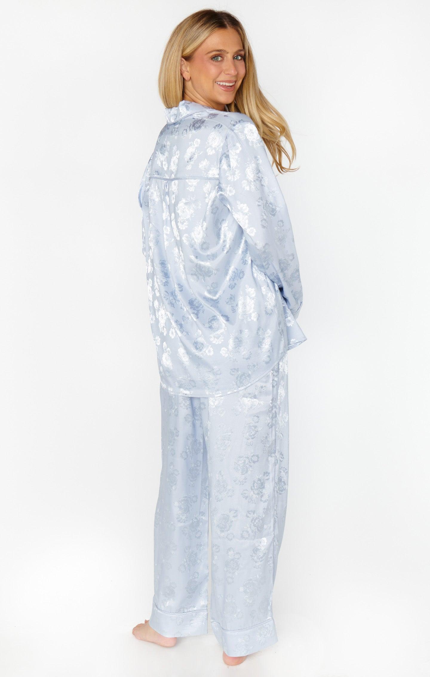 Classic Cropped PJ Set ~ Blue Floral Silky