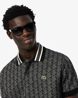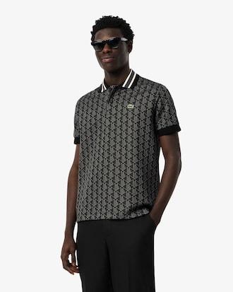 This polo shirt offers a new, original take on the iconic design created by Lacoste in 1933. The jacquard knit monogram motif, ribbed trim, and contrast striped collar will help you stand out from the crowd. A resolutely modern design, blending comfort and elegance.