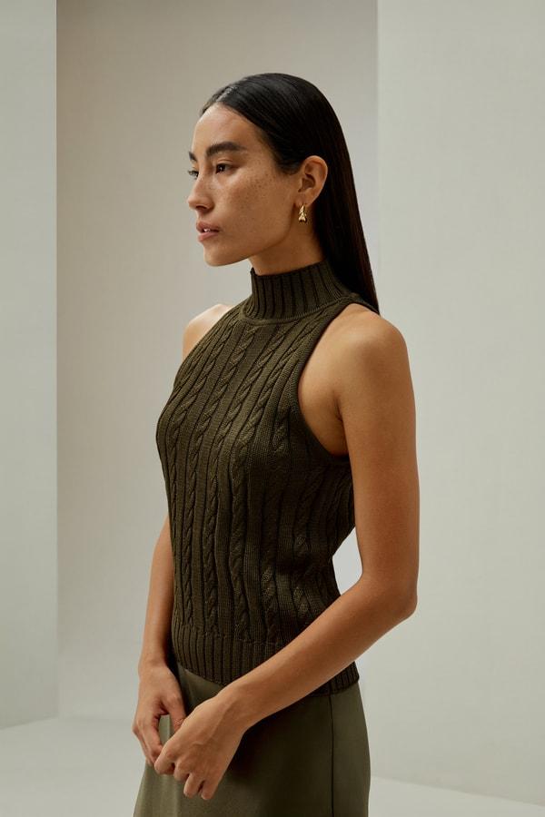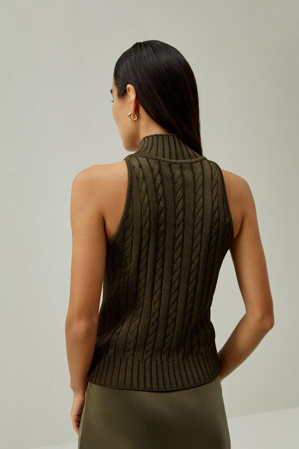 Classic High-Neck Cable-Knit Sleeveless Top