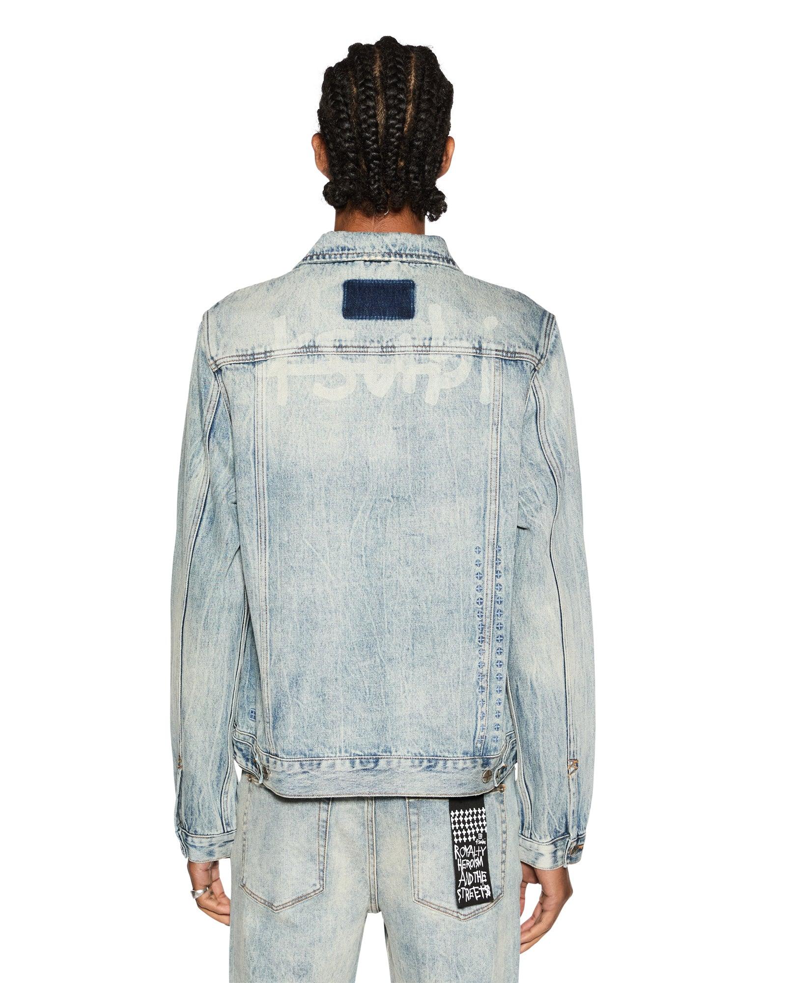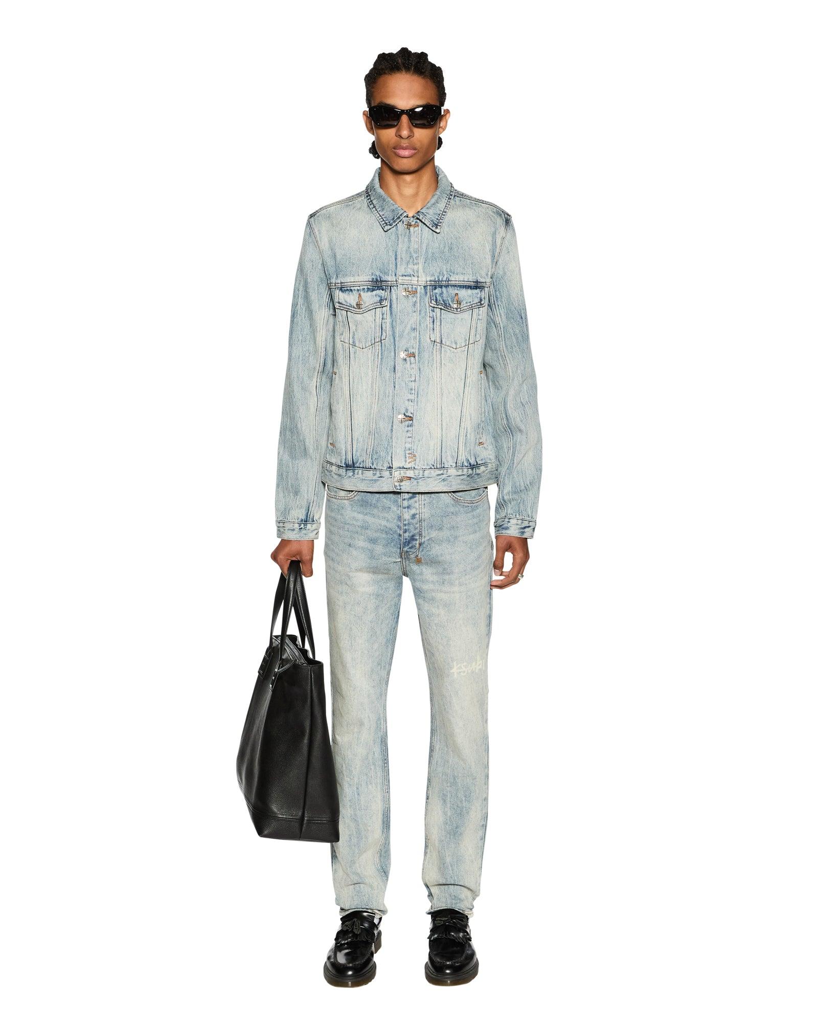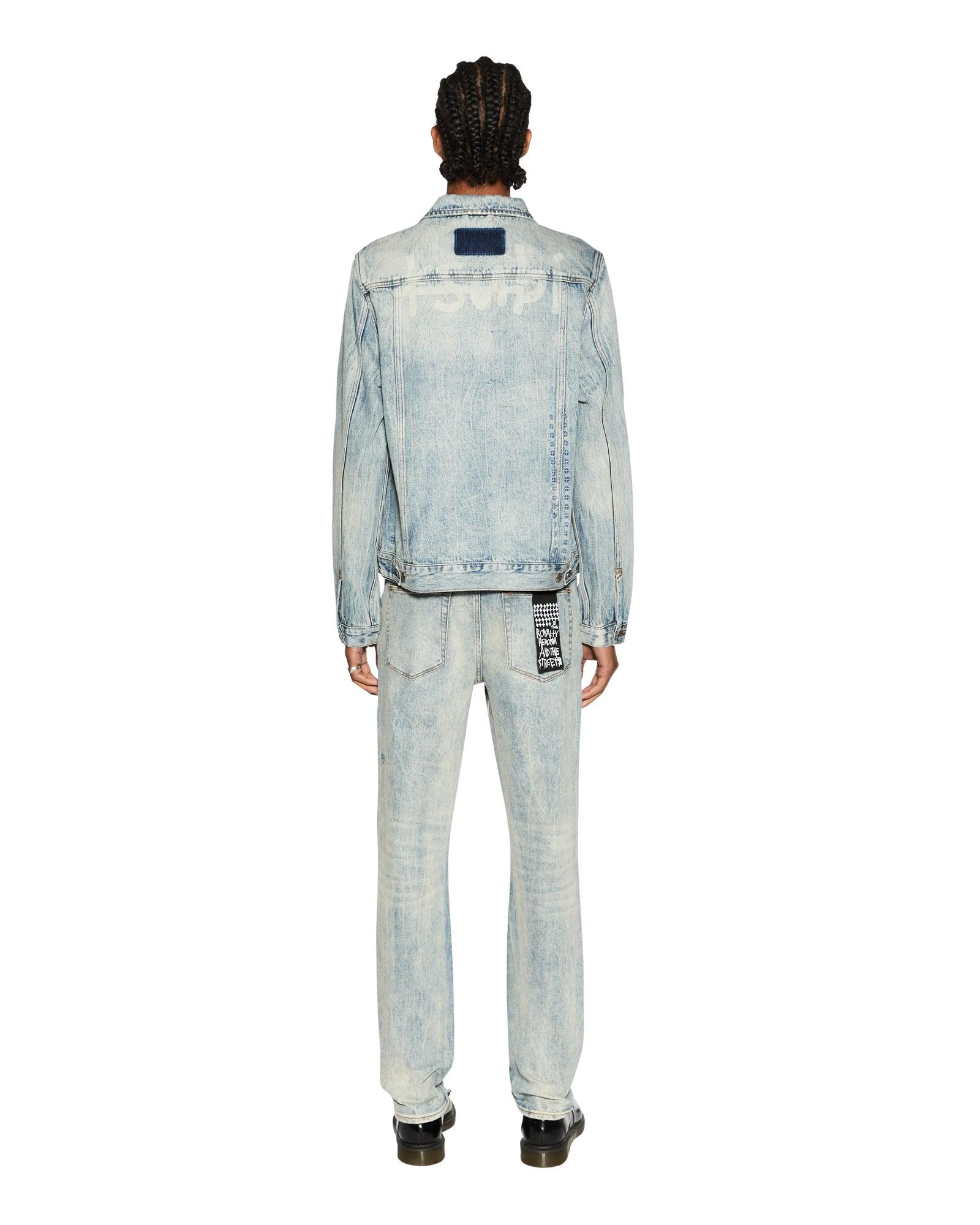 The Classic Jacket Stairway is a timeless trucker jacket crafted from premium rigid indigo denim with a heavy blue marbled stone wash. It features traditional trucker construction, a large 1999 logo, and is finished with back t-box and 4x4 cross embroidery, along with Ksubi branded hardware.