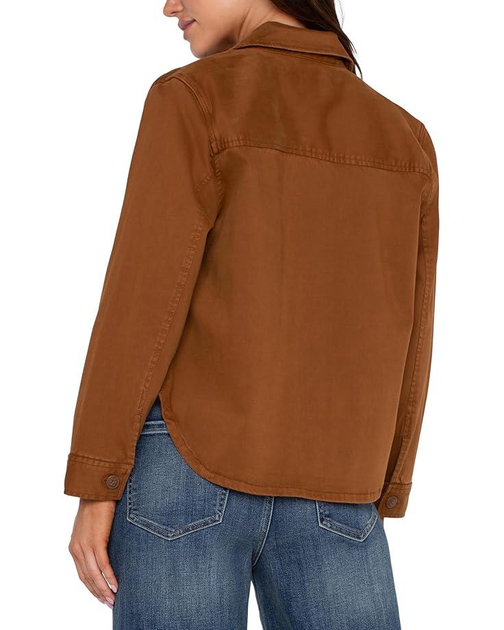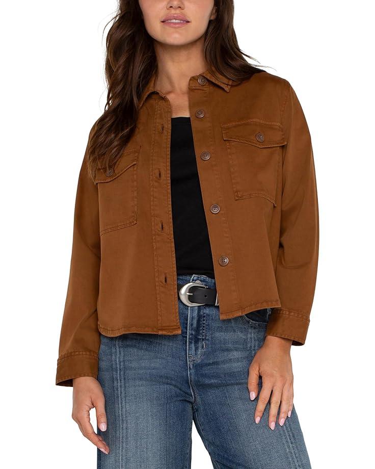 Complete your everyday look styling the Liverpool™ Los Angeles Cropped Shirt Jacket in ultra-soft touch twill. This trendy piece boasts a regular fit, collared neck, and two chest pockets for practical elegance. With tonal buttons and a button front closure, it's perfect for adding a touch of sophistication. Long sleeves with buttoned cuffs enhance its versatile design, making it a must-have for your wardrobe.