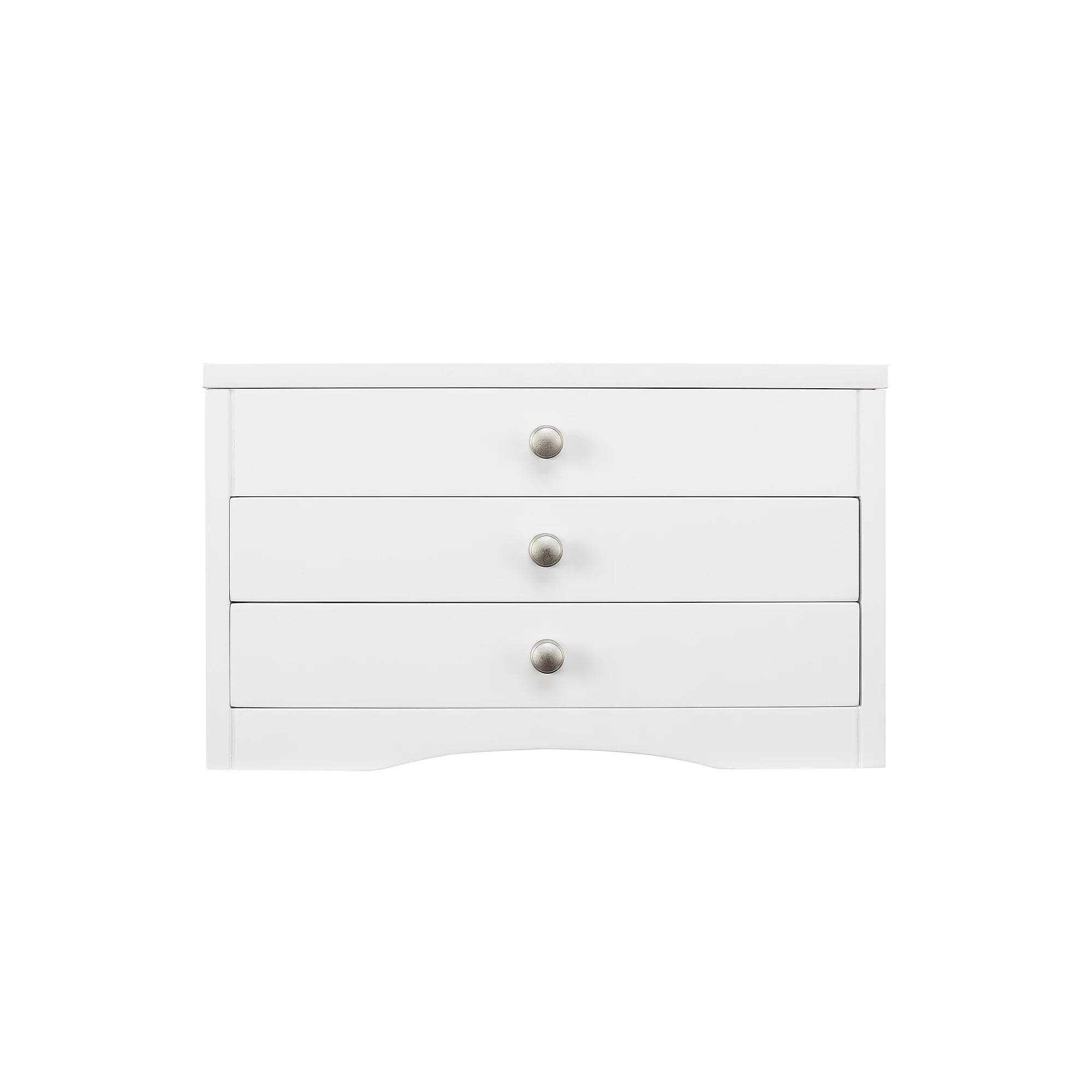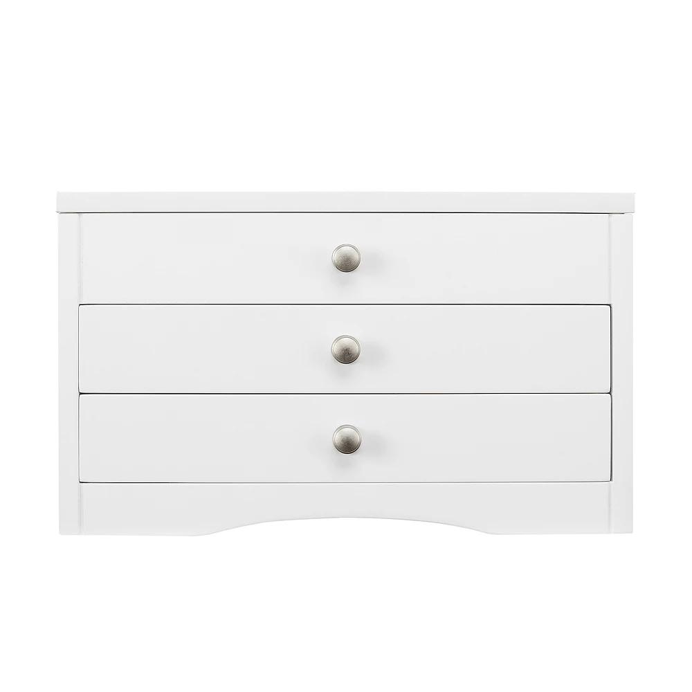 Store your accessories in style with this classic lift top white jewelry box. Store your accessories in style with this classic lift top white jewelry box. Dimensions: 6 in. x10 in. x 6.5 in. Finish: white Hinged lift-top lid with mirror Ring holder and storage sections in top Drawers: 2 Wood composite Size: One Size. Gender: female. Age Group: adult.
