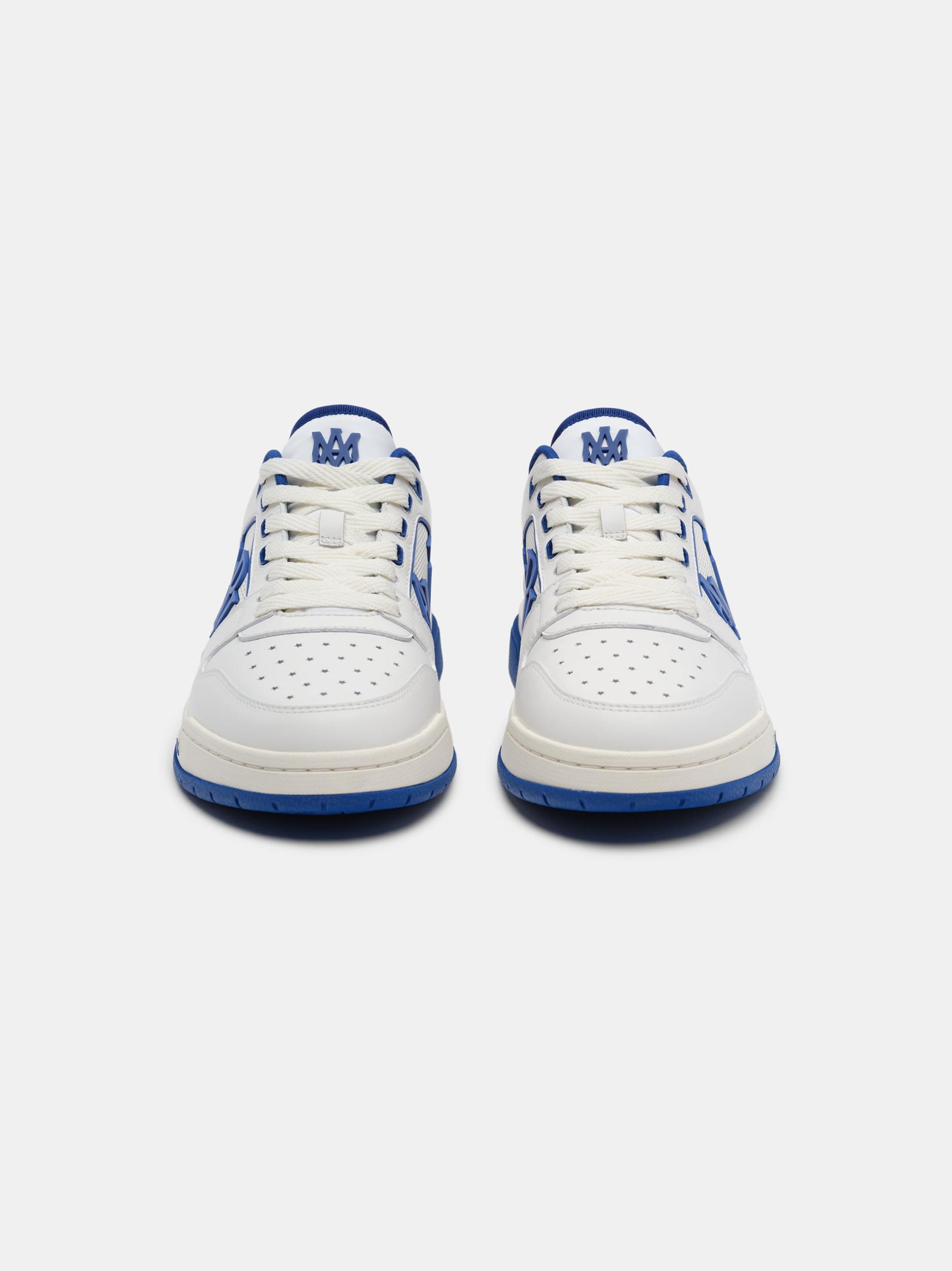 Pre-Fall 2024 presents the house's interpretation of the timeless tennis sneaker in new seasonal hues. The Classic Low is crafted on a two-tone rubber sole with leather upper and central panels of molded rubber mesh framing the AMIRI staggered logo. PRE-FALL 2024 COLLECTION MADE IN VIETNAM UPPER: LEATHER/TETORON, SOLE: RUBBER