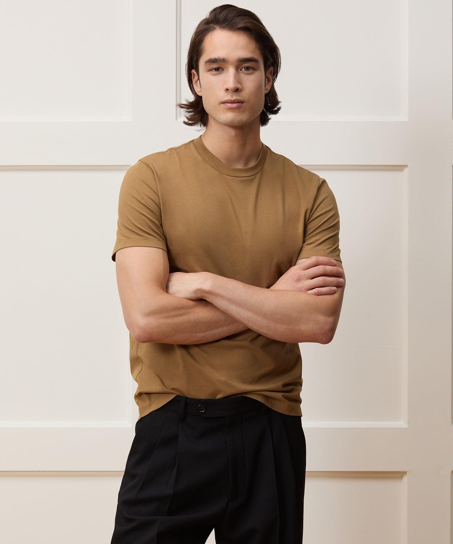 When you want the casual cool of a tee but need to step things up slightly, wear this. Crafted from lustrous, silky and super soft cotton, it has a sleek feel — the fabric is dense, but drapes handsomely. The classic fit and separate knit trim at the collar and sleeve gives this a clean look, perfect all on its own or worn under suiting. 100% Cotton Classic Fit Knit Trims Made in Turkey Dry clean or machine wash cold, gentle cycle. Do not tumble dry, lay flat to dry. Warm iron as needed. Style KN4150644