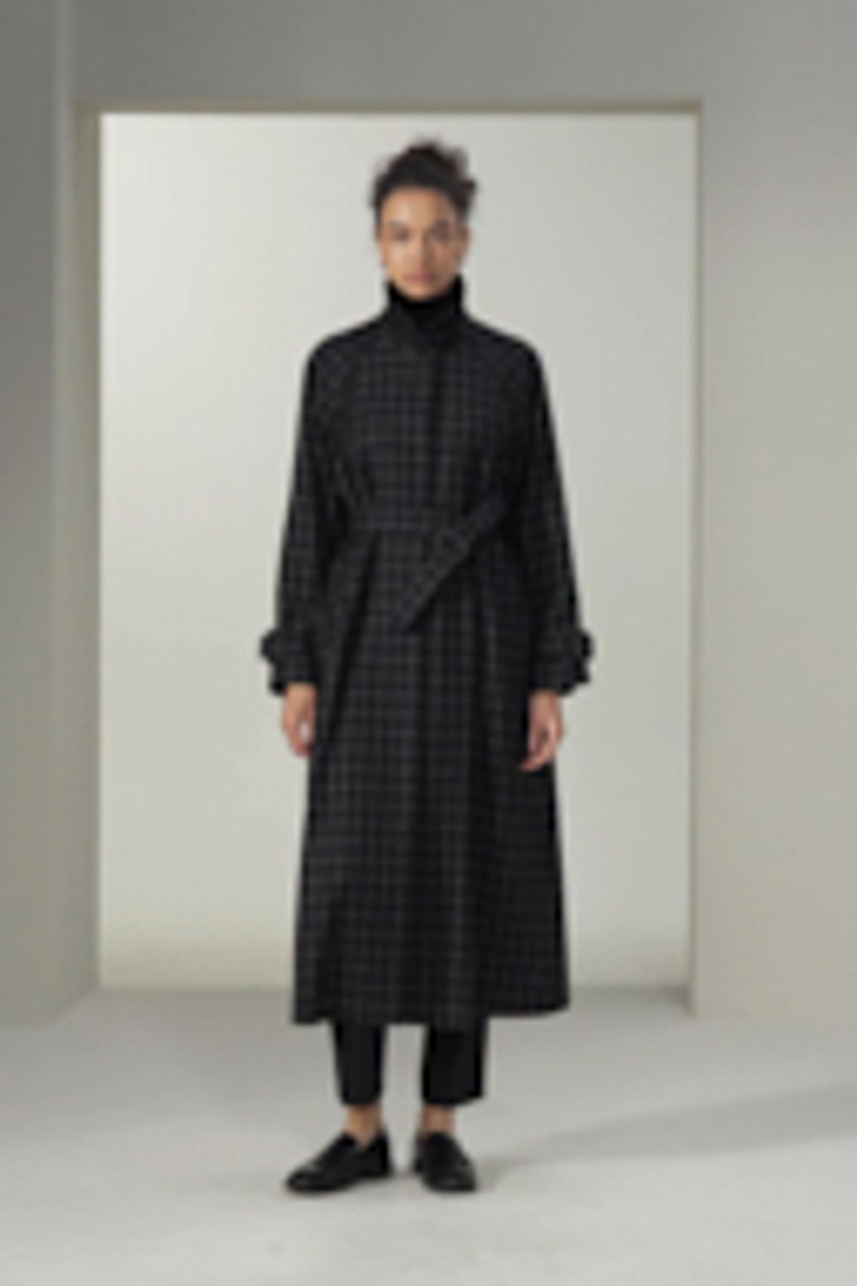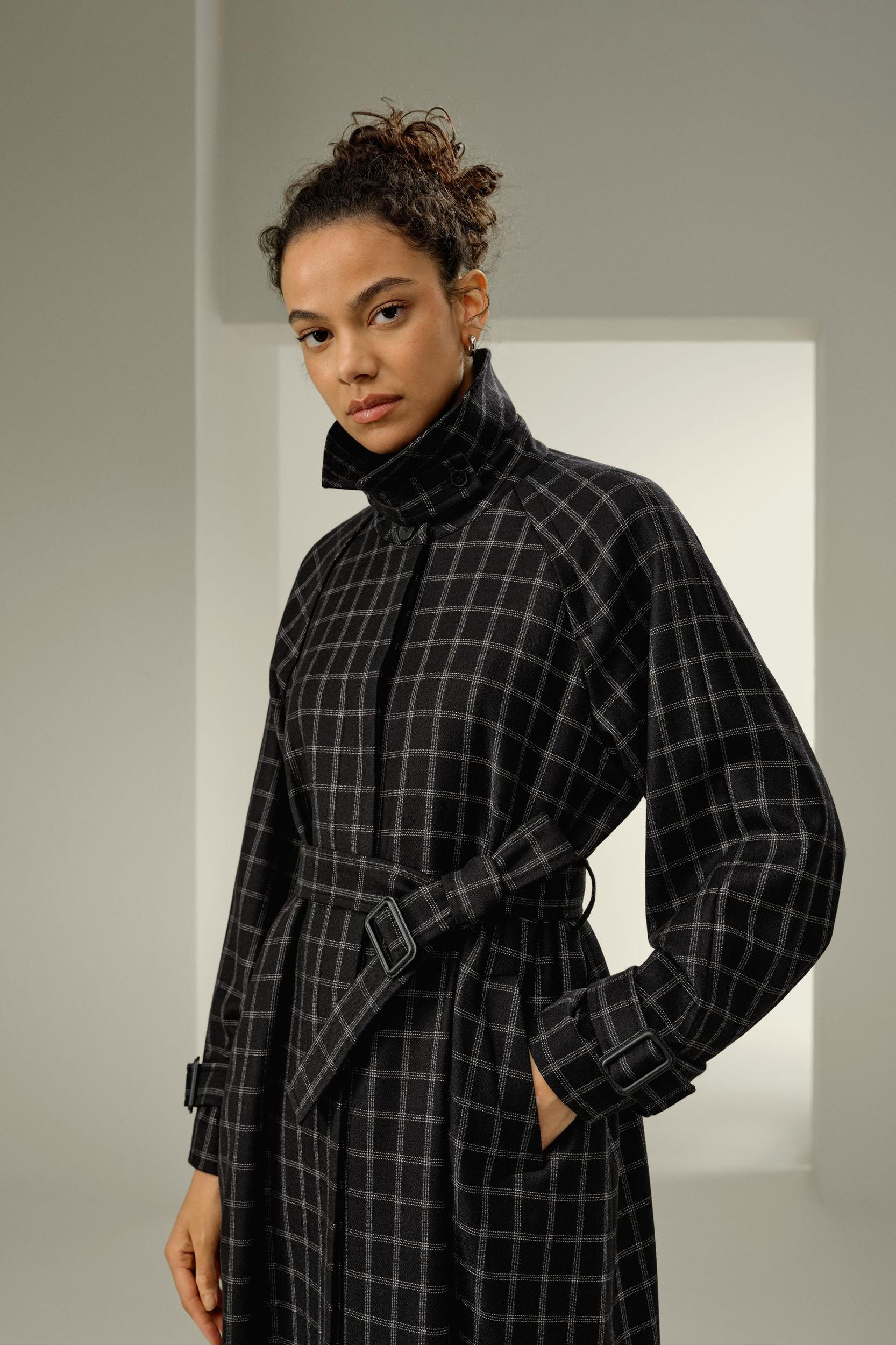 Classic Silk-Wool Windowpane Coat