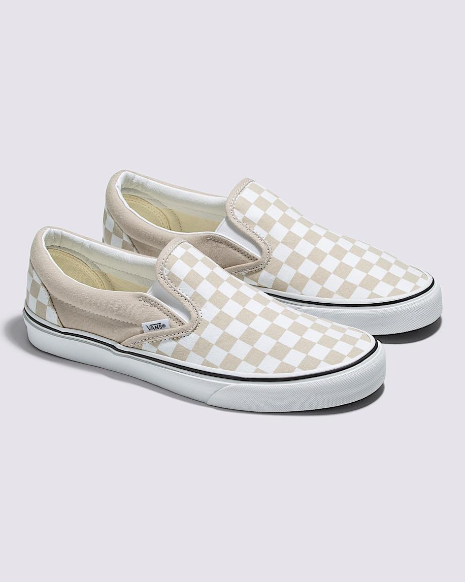 Classic Slip-On Checkerboard Shoe in French Oak Beige / White| Vans US