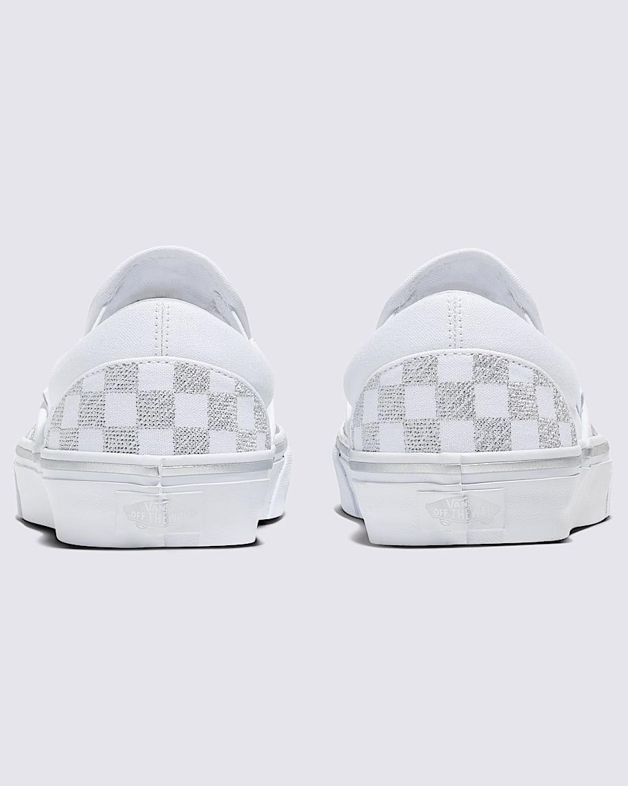 Classic Slip-On Checkerboard Shoe in Metallic Silver / True White| Vans US