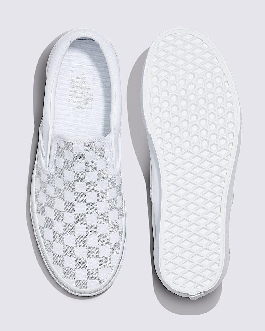 Browse Vans Classic Slip-On Checkerboard Shoe in Metallic Silver / True White today. Shop now on our official US store. Free delivery & returns available.