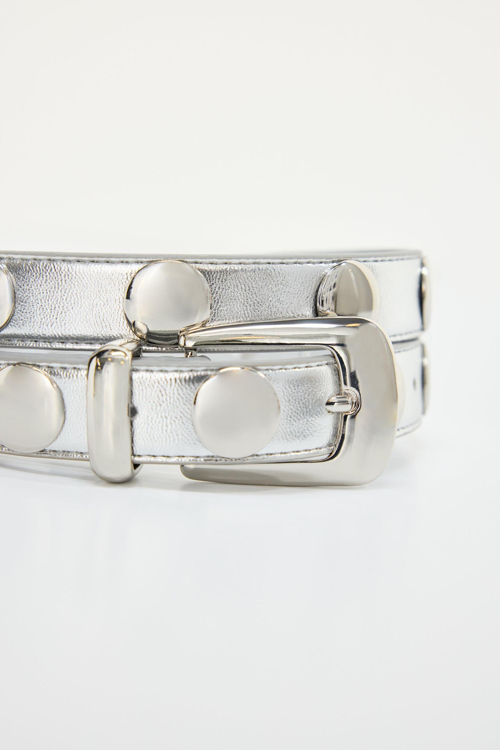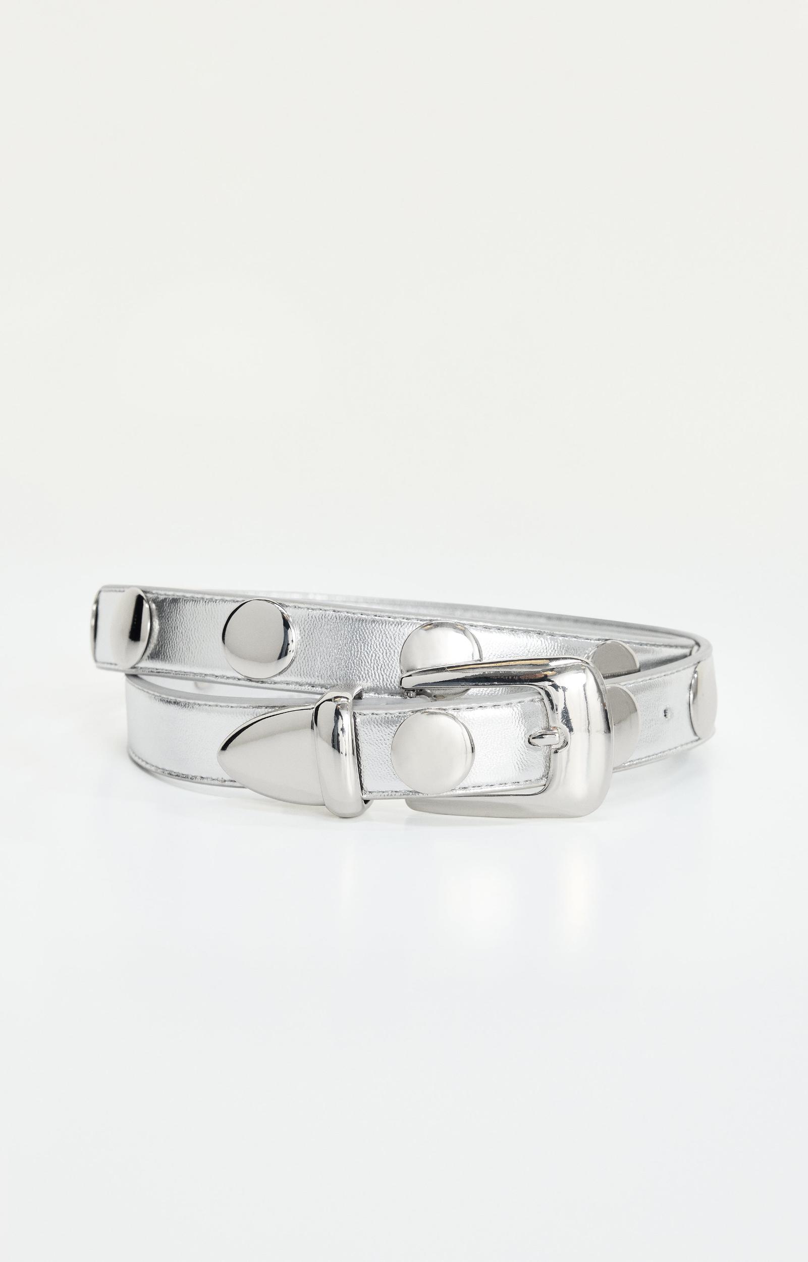 Studded, silver and seriously stunning. The Classic Studded Silver Belt becomes the statement piece that just won't stop talking. Crafted from premium vegan leather, this is the belt you wear when you want to stop the show. Available in extended sizing. Faux leather 7 adjustment holes Stud detailing Traditional buckle Classic strap
