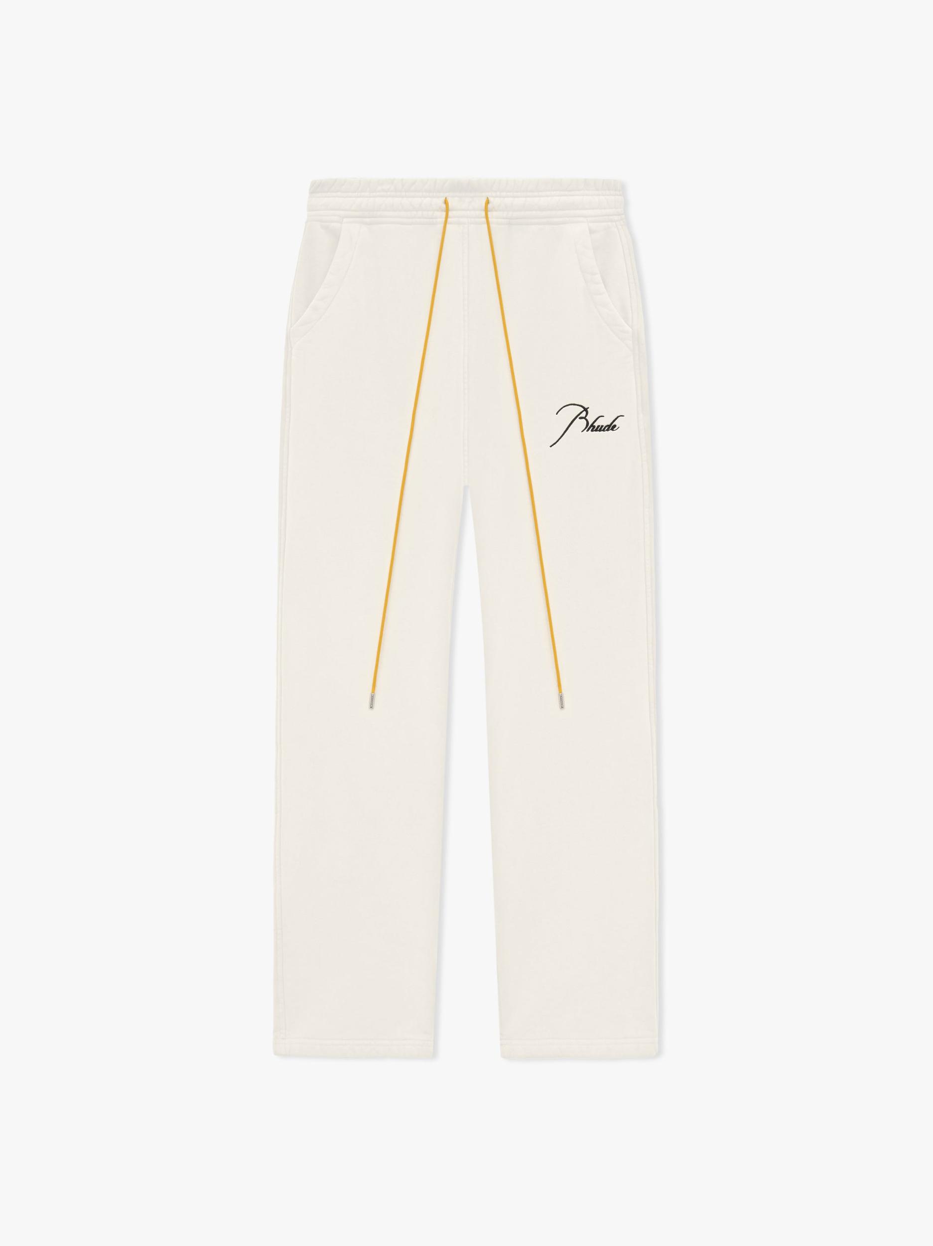Heavyweight terry sweatpant with signature Rhude script logo embroidered on the front featuring our exaggerated drawstrings in mustard tone. 100% COTTON STANDARD FITWE RECOMMEND TAKING YOUR STANDARD SIZE