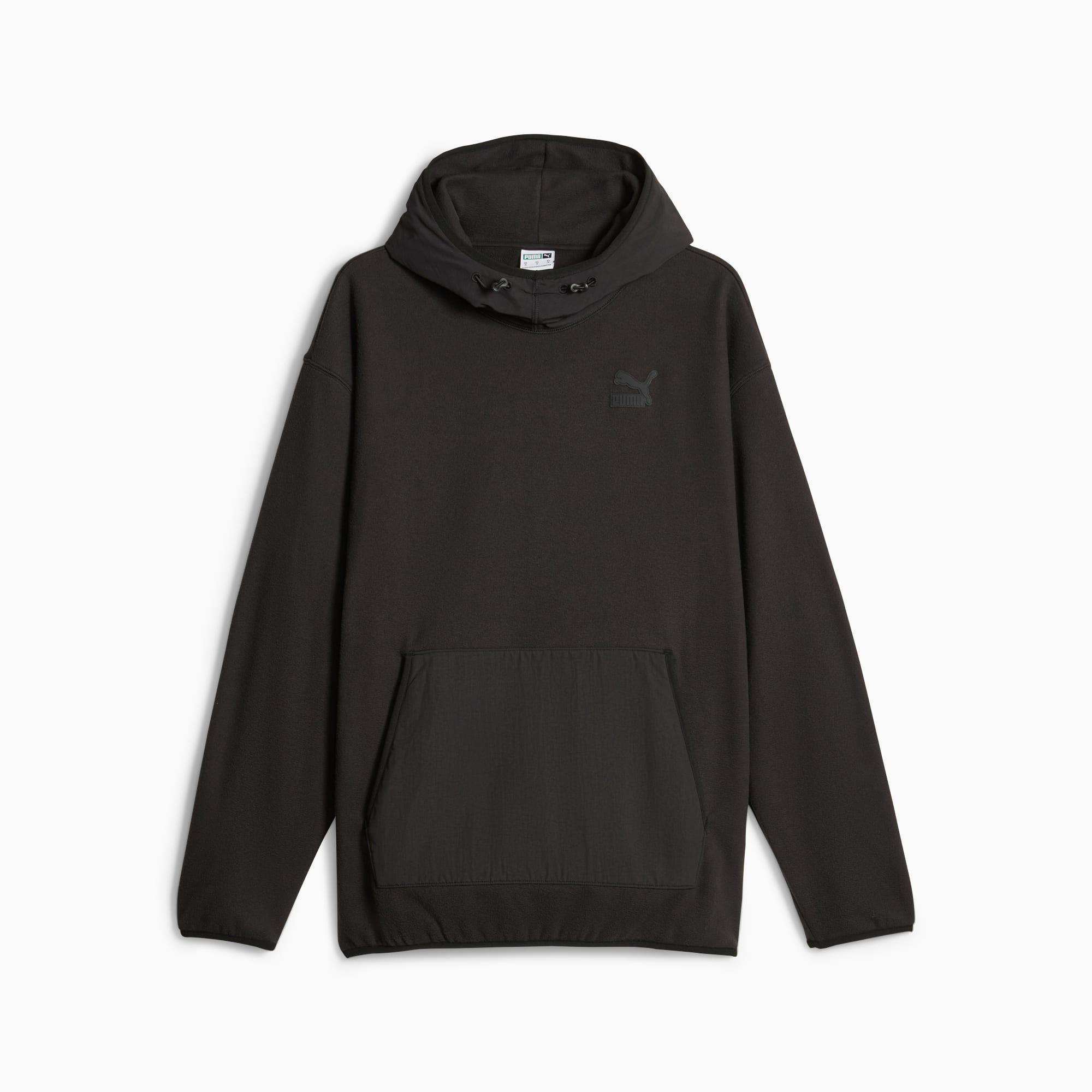 In the Classics Utility Hoodie, you've got the combination of classic style and go-anywhere performance materials designed to help you operate in the great outdoors or the gym. Where are you headed?rainCELL: Technology designed to keep you protected from the rain and dry during exercisewarmCELL: Breathable cold weather technology designed to trap heat close to your body and keep you warm during exercisewindCELL: Technology designed to protect against the wind and keep you comfortable during exerciseCotton in PUMA products comes from farms with a focus on sustainable farming such as water efficiency and soil health protection. Learn more: PUMA.com/FOREVER BETTERRelaxed fitElastic cuffsSilicone Archive No.1 Logo BadgeHood with elastic cords for an adjustable fitElastic binding on cuffs and hem
