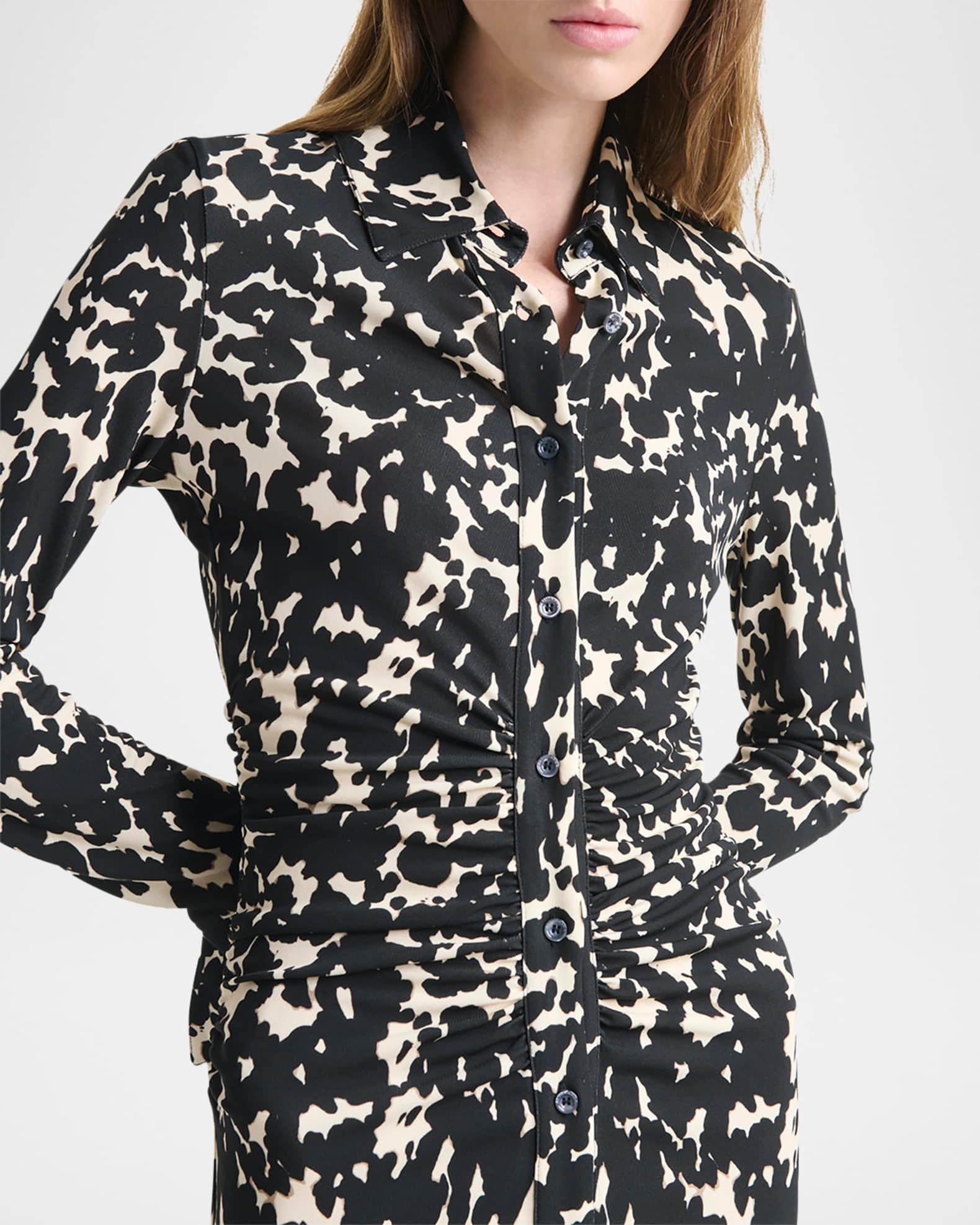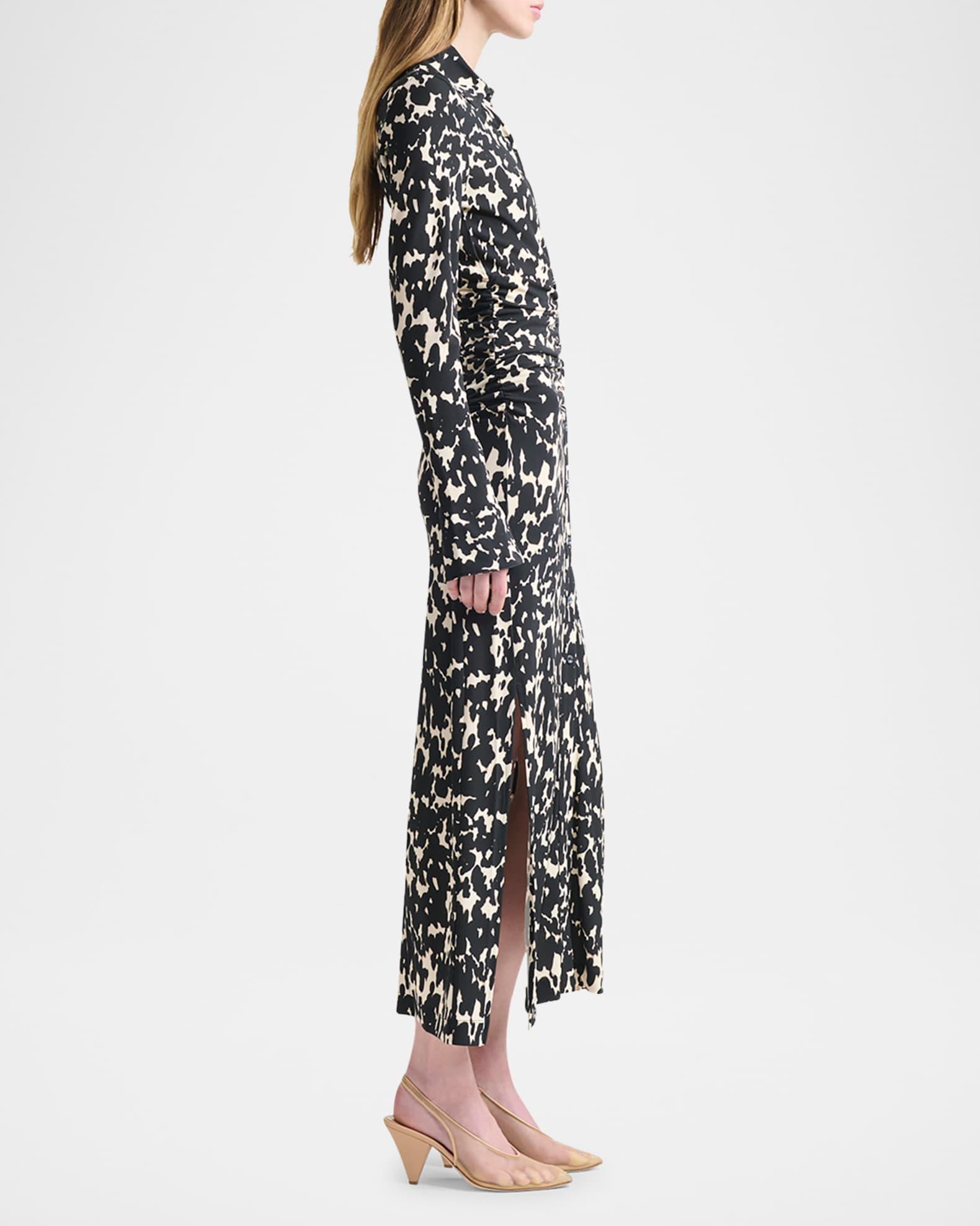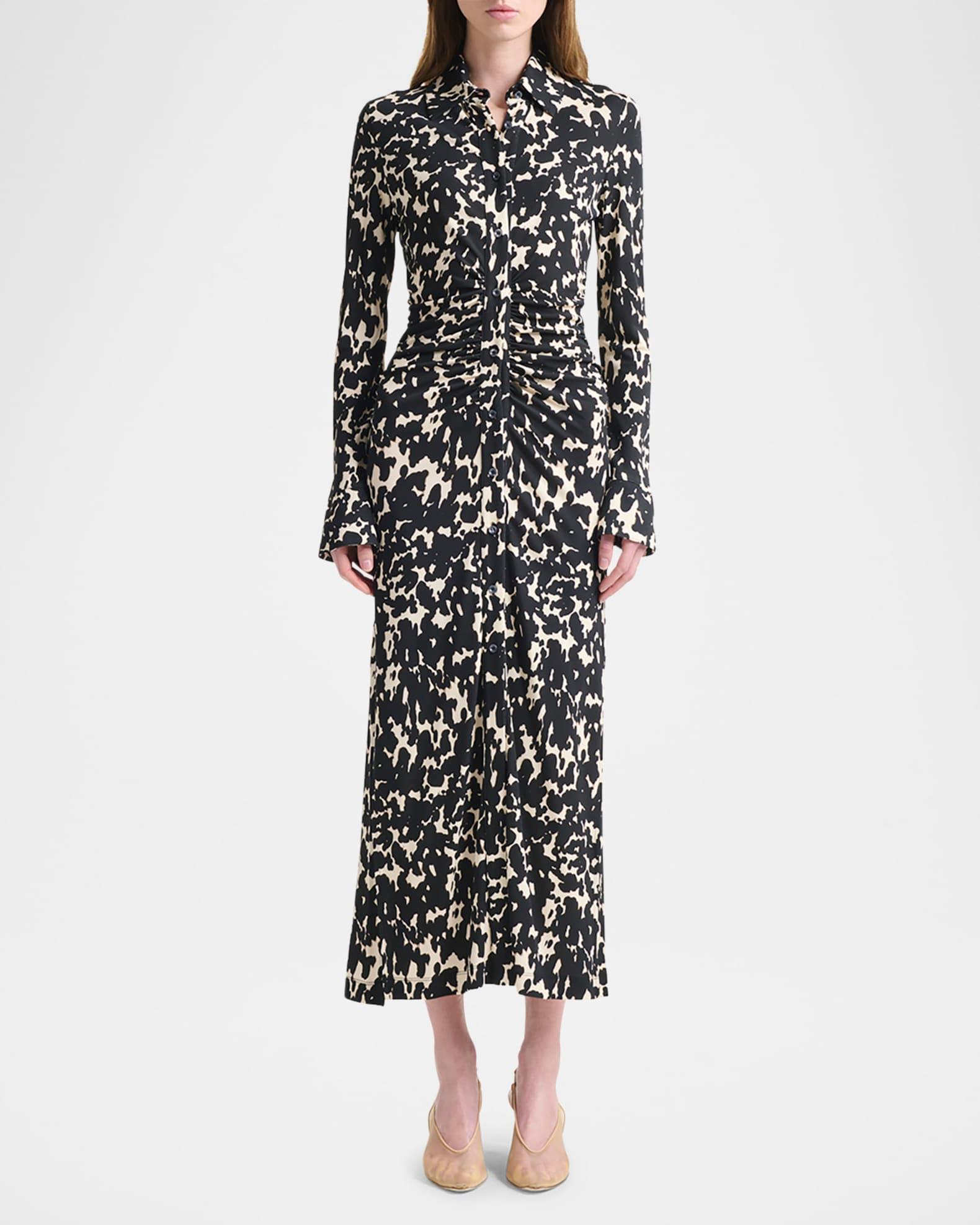 Claudia Spotted Long-Sleeve Midi Shirtdress
