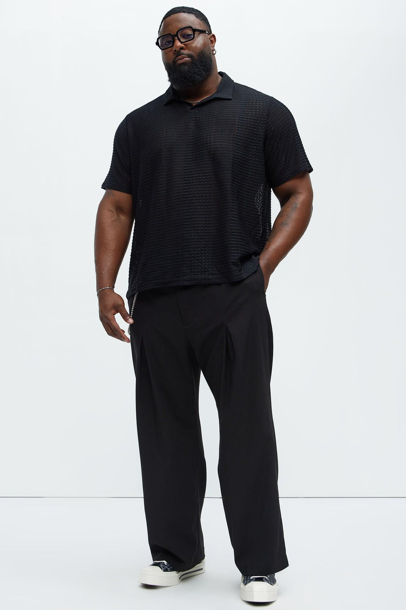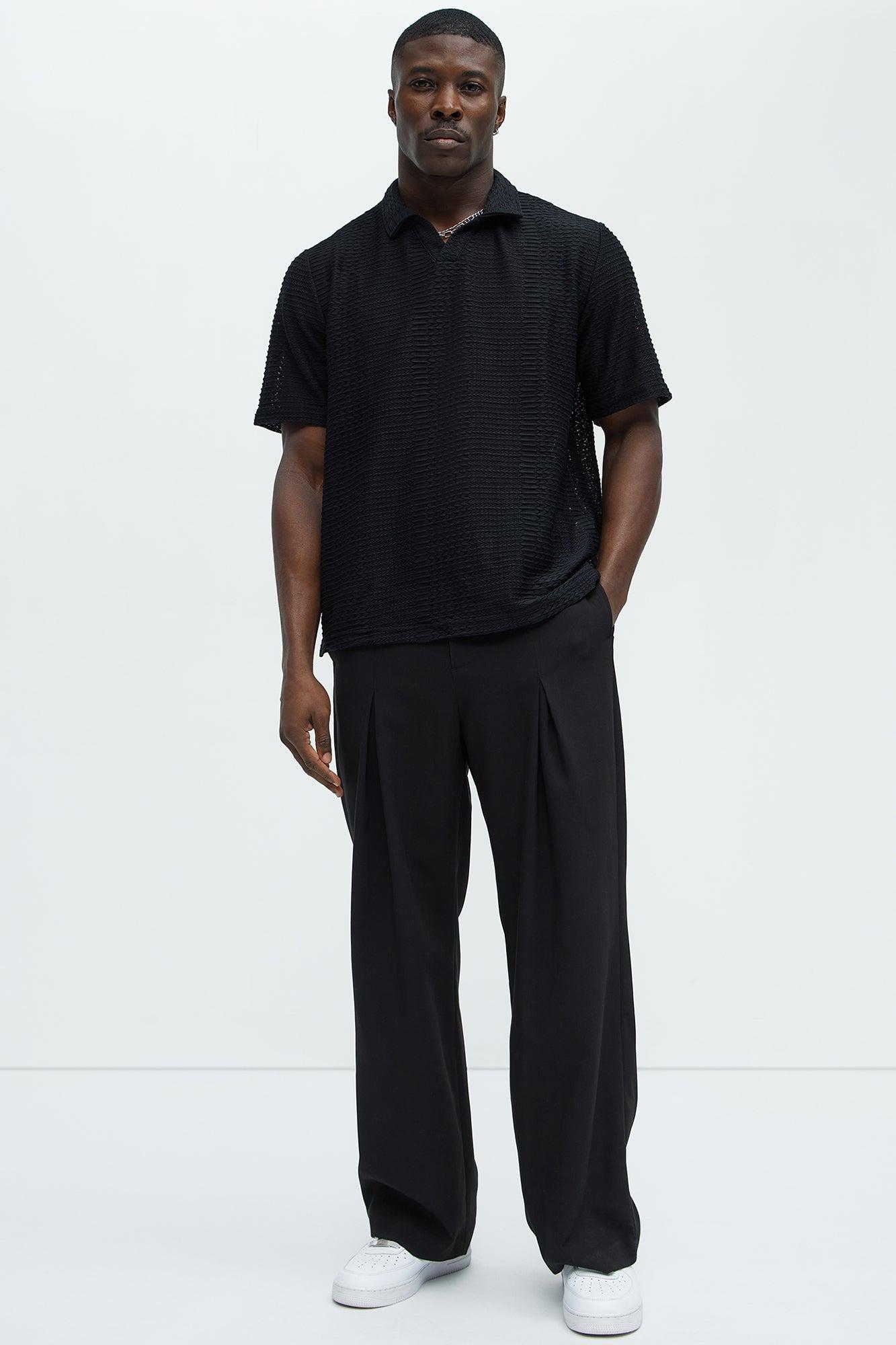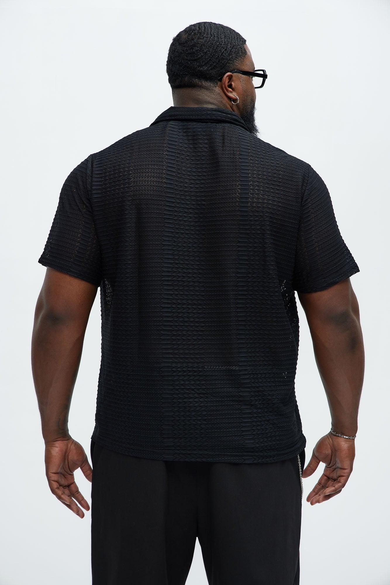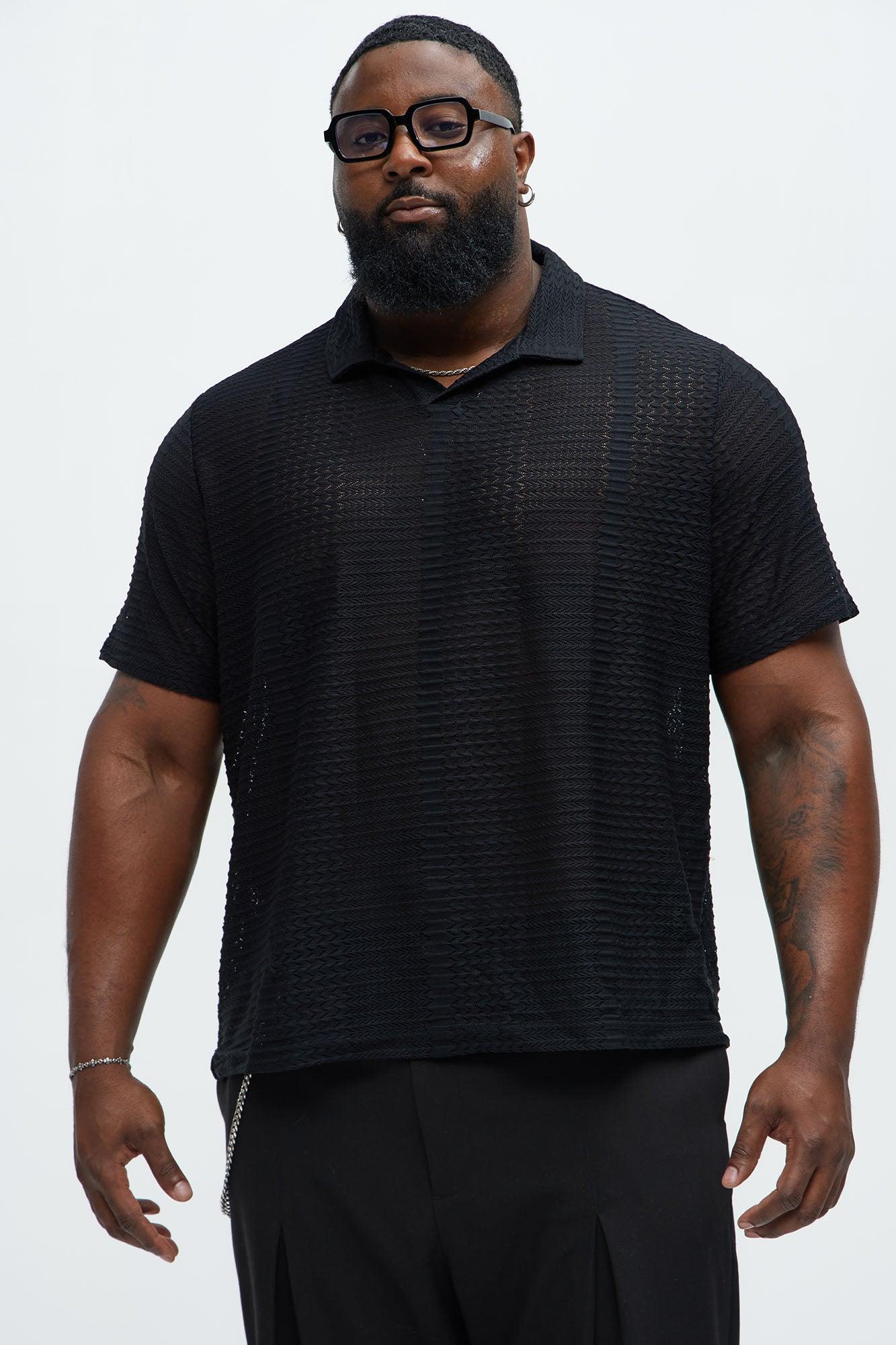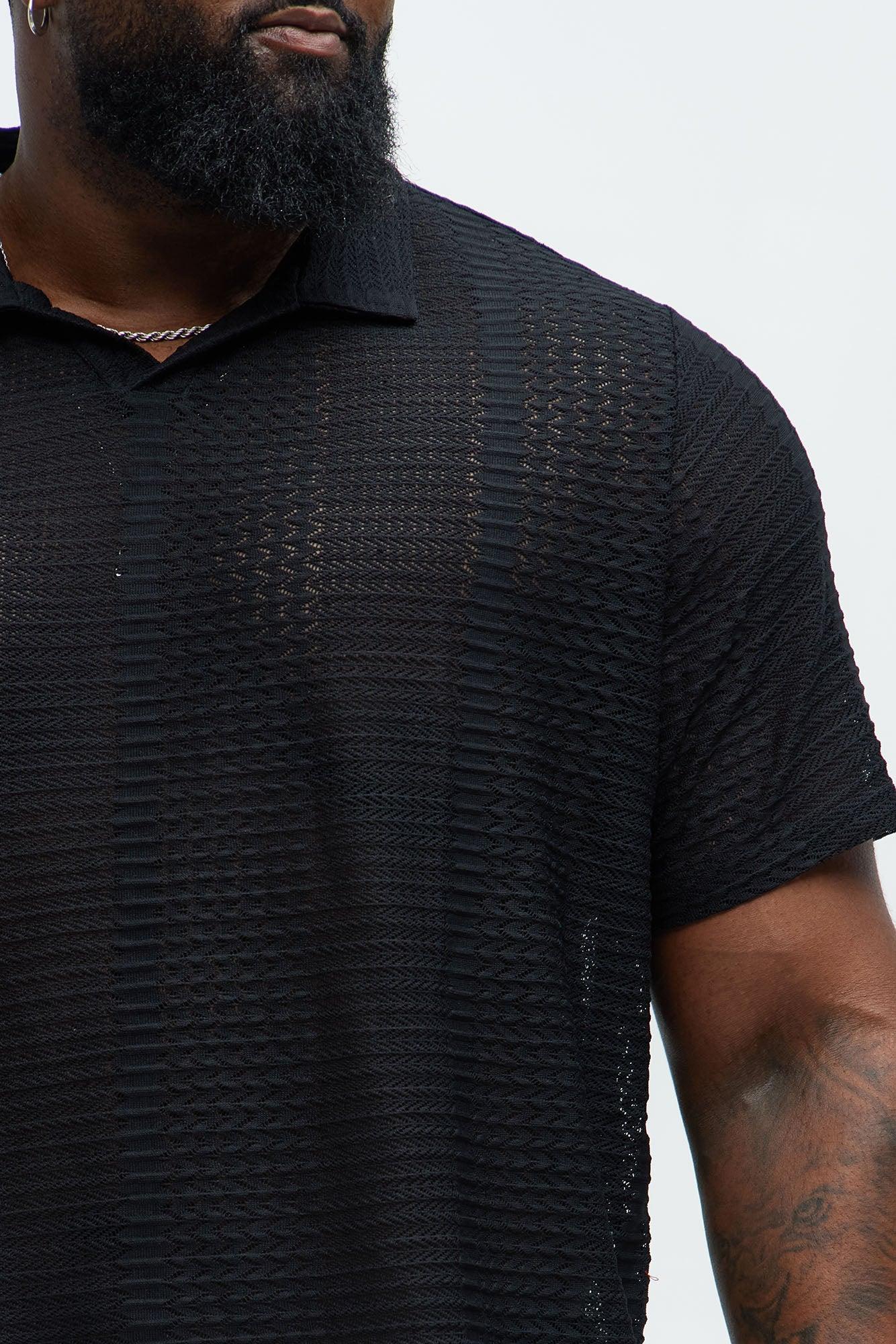 Available In Black. Johnny Collar Textured Open Knit Short Sleeves 95% Polyester, 5% Spandex Disclaimer: This garment has been made with delicate materials and may snag or pull if jewelry or watches are worn. Do not wash with items that may cause snagging such as zippers or hooks. This garment is unique and must be handled with care. Imported California Proposition 65 WARNING: Cancer and Reproductive Harm - www.P65Warnings.ca.gov.