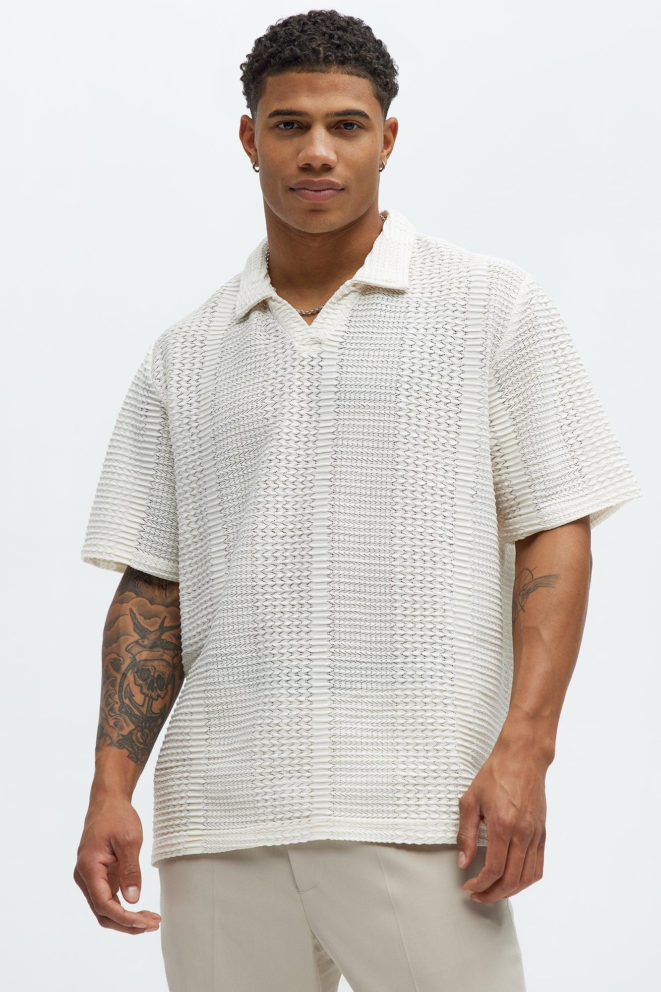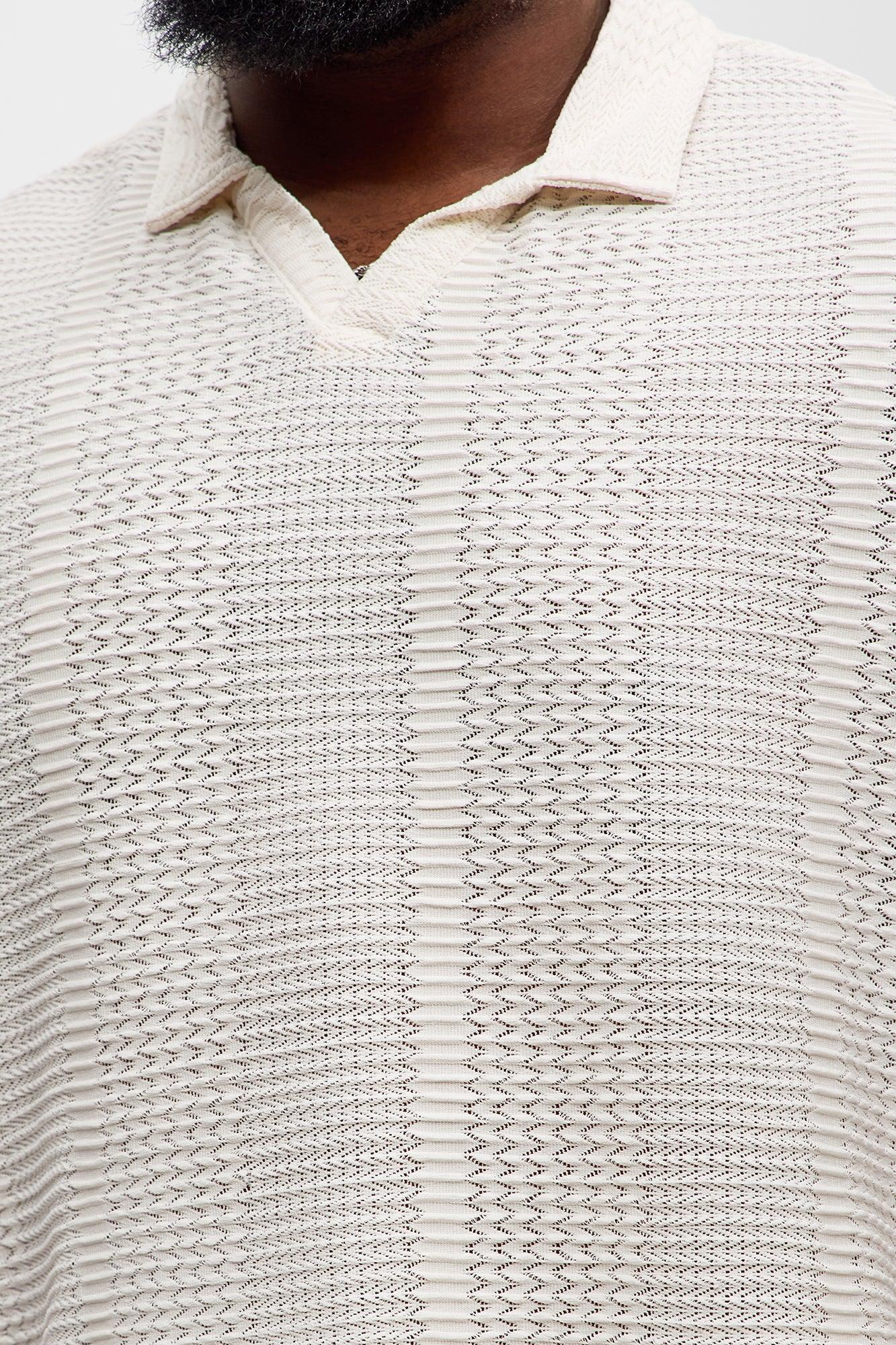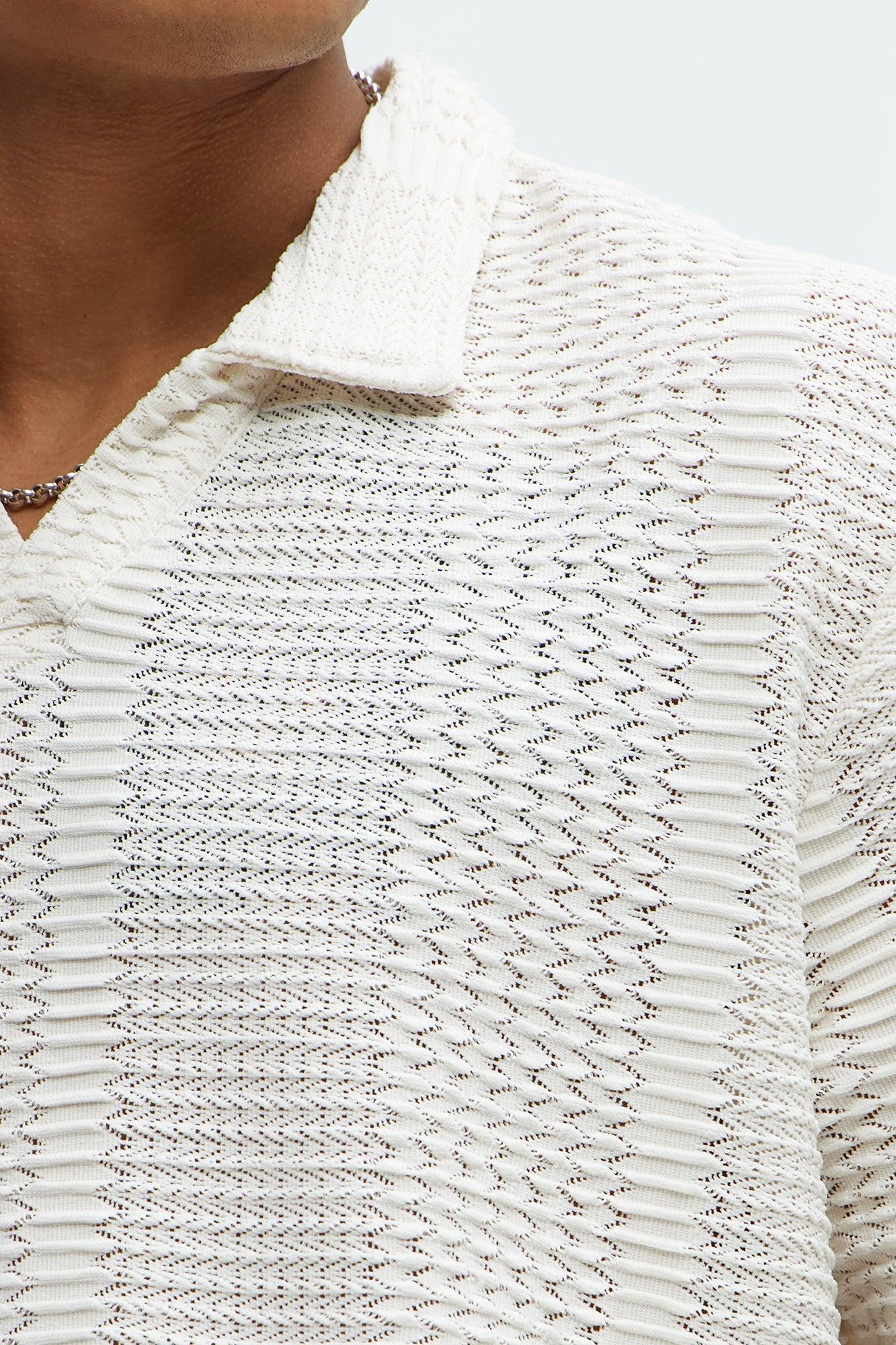 Clay Wavy Open Knit Johnny Collar Shirt - Off White